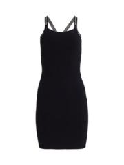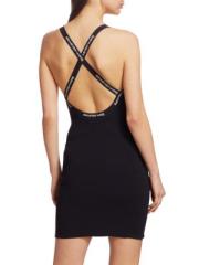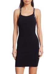 تُؤطر أحزمة الشعار هذا الفستان بدون أكمام المصمم على طراز الشارع.سكوبنك بدون أكمام تصميم سهل الارتداء تقليم شريط الشعار فيسكوز تنظيف جاف مستوردة