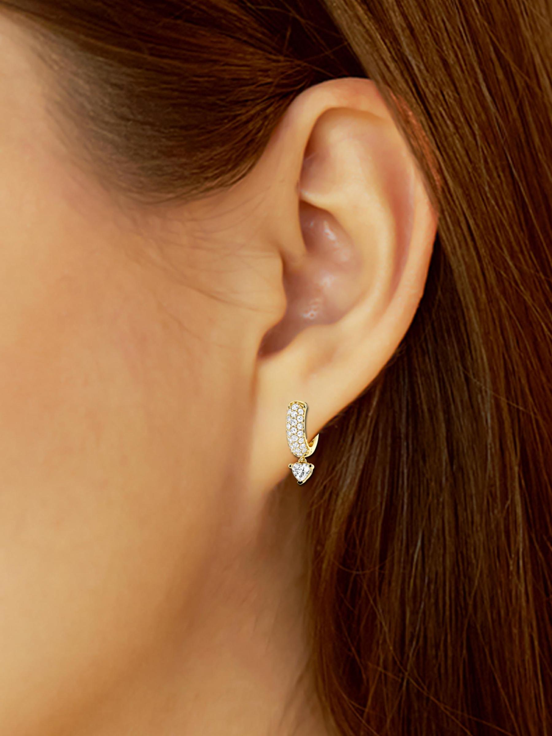 من مجموعة Bombë. تتميّز أقراط huggie الحلقية الأنيقة من naas المصنوعة من الذهب الأصفر عيار 14 قيراطًا والمرصّع بأحجار الماس الأنيقة المقطوعة على شكل قلب.ألماس مزروع في المختبر، 0.50 tcw درجة لون الماس: F-G درجة وضوح الماس: SI ذهب أصفر عيار 14 ليفيرباك مستوردة