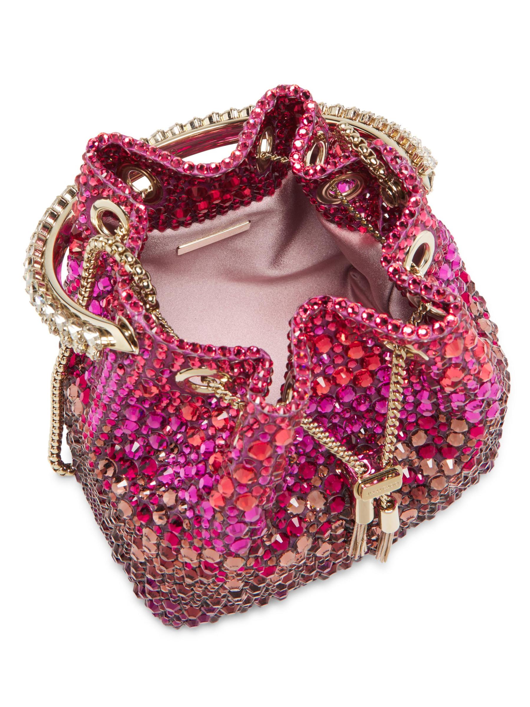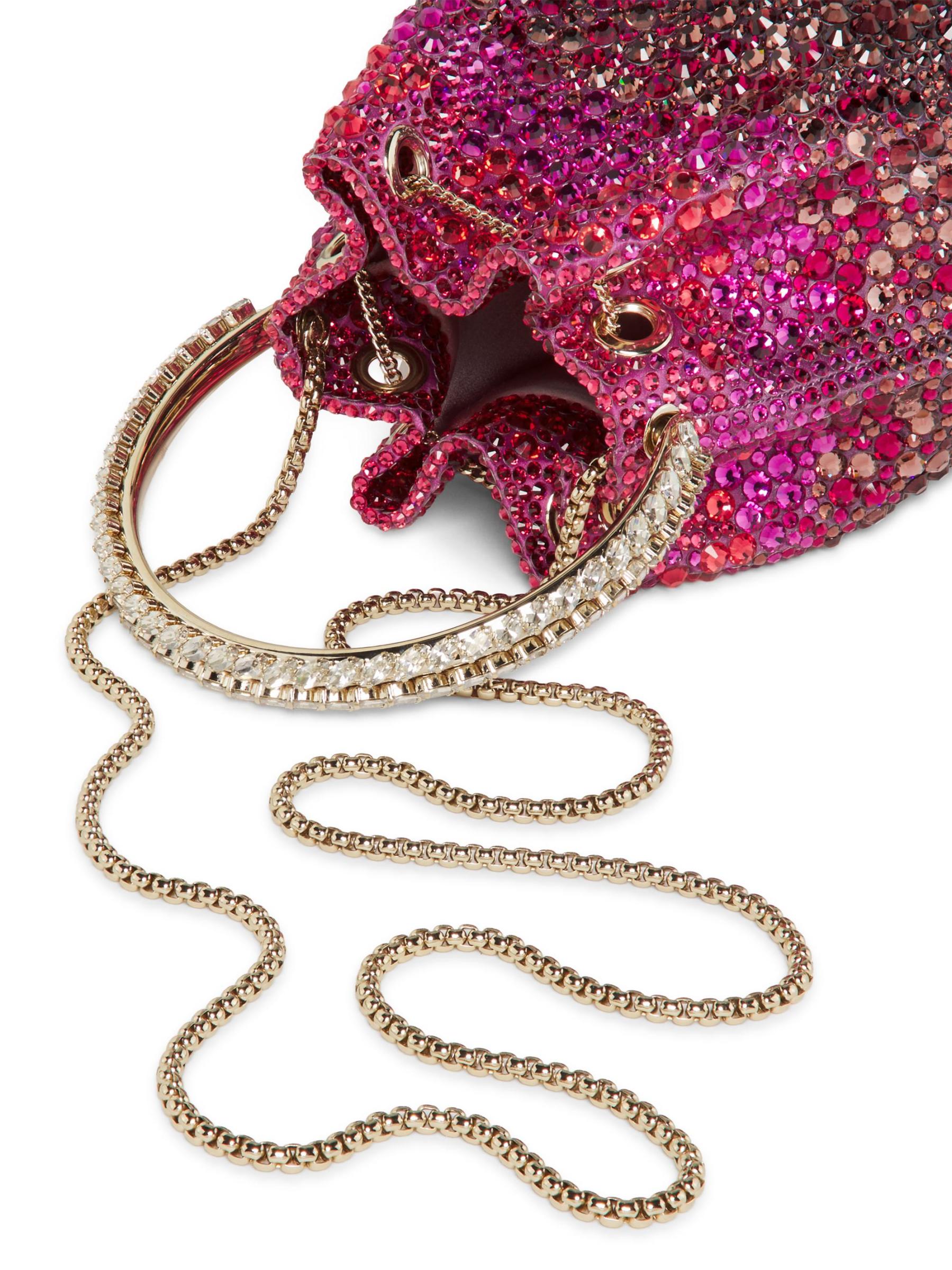 حقيبة Bon Bon ذات المقبض العلوي من Jimmy Choo مصنوعة من الساتان وتتميز بتصميم مزين بالكريستال للحصول على لمسة نهائية مذهلة.