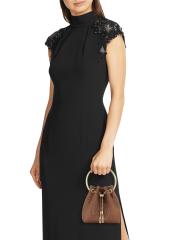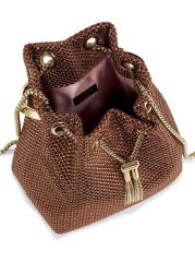 تم تصميم حقيبة بون بون ذات المقبض العلوي من جيمي تشو المصنوعة من القماش الشبكي مع حزام كتف قابل للإزالة ورباط علوي.