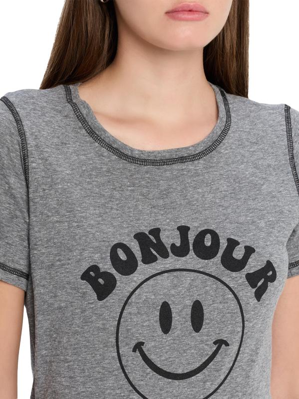 تيشيرت بونجور سمايلي جرافيك