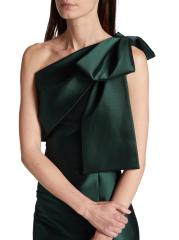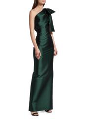 فستان Bonnie من Sachin + Babi هو نمط ساتان مع تصميم بكتف واحد يعلوه القوس.