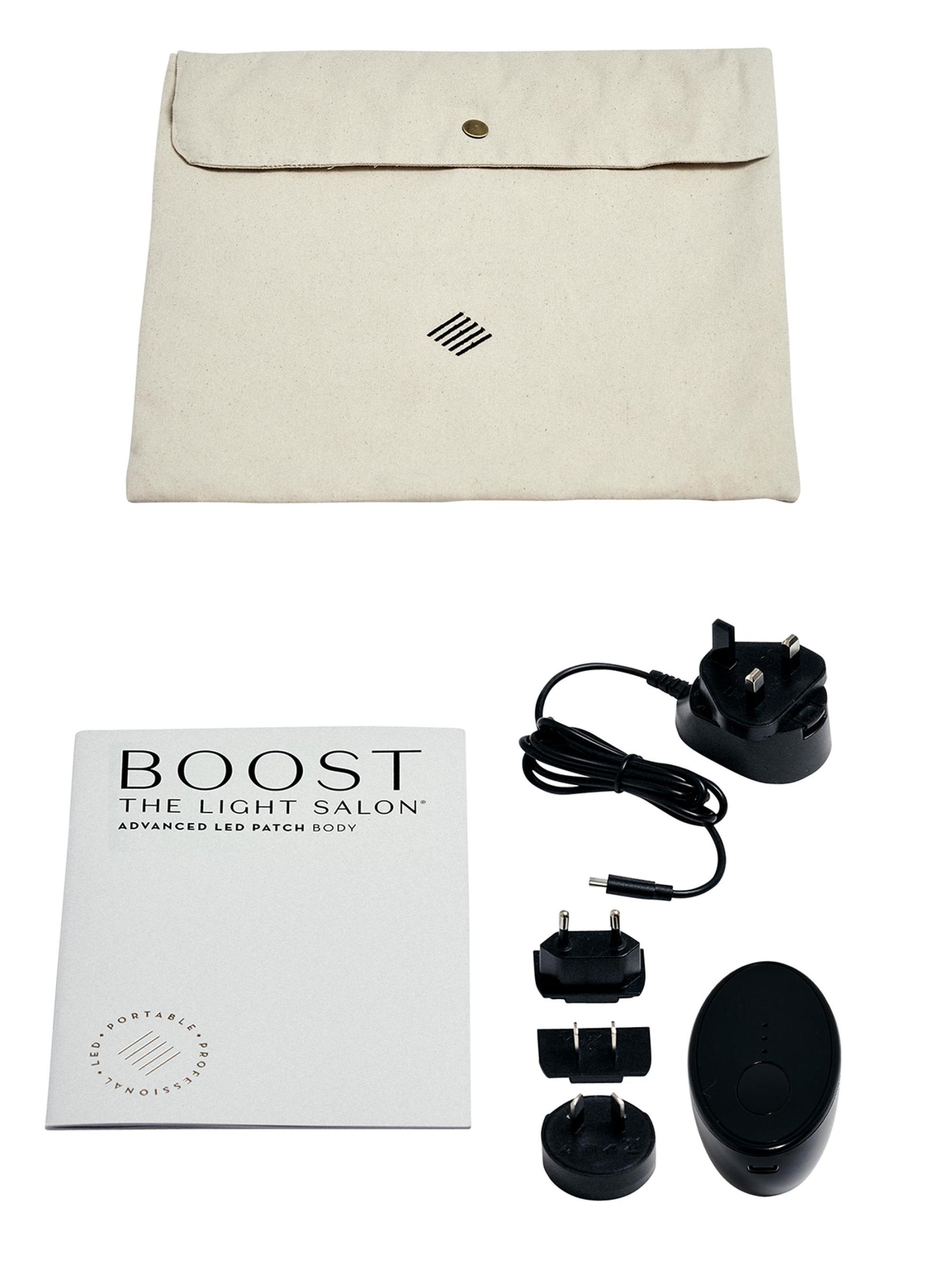 توفر رقعة Boost LED للجسم من The Light Salon فوائد تحويلية للعناية بالبشرة والعافية للجسم كله - كل ذلك من المنزل المريح. يعمل الجهاز ببطارية ليثيوم أيون بقدرة 9.62 وات/2200 مللي أمبير. مستوردة.