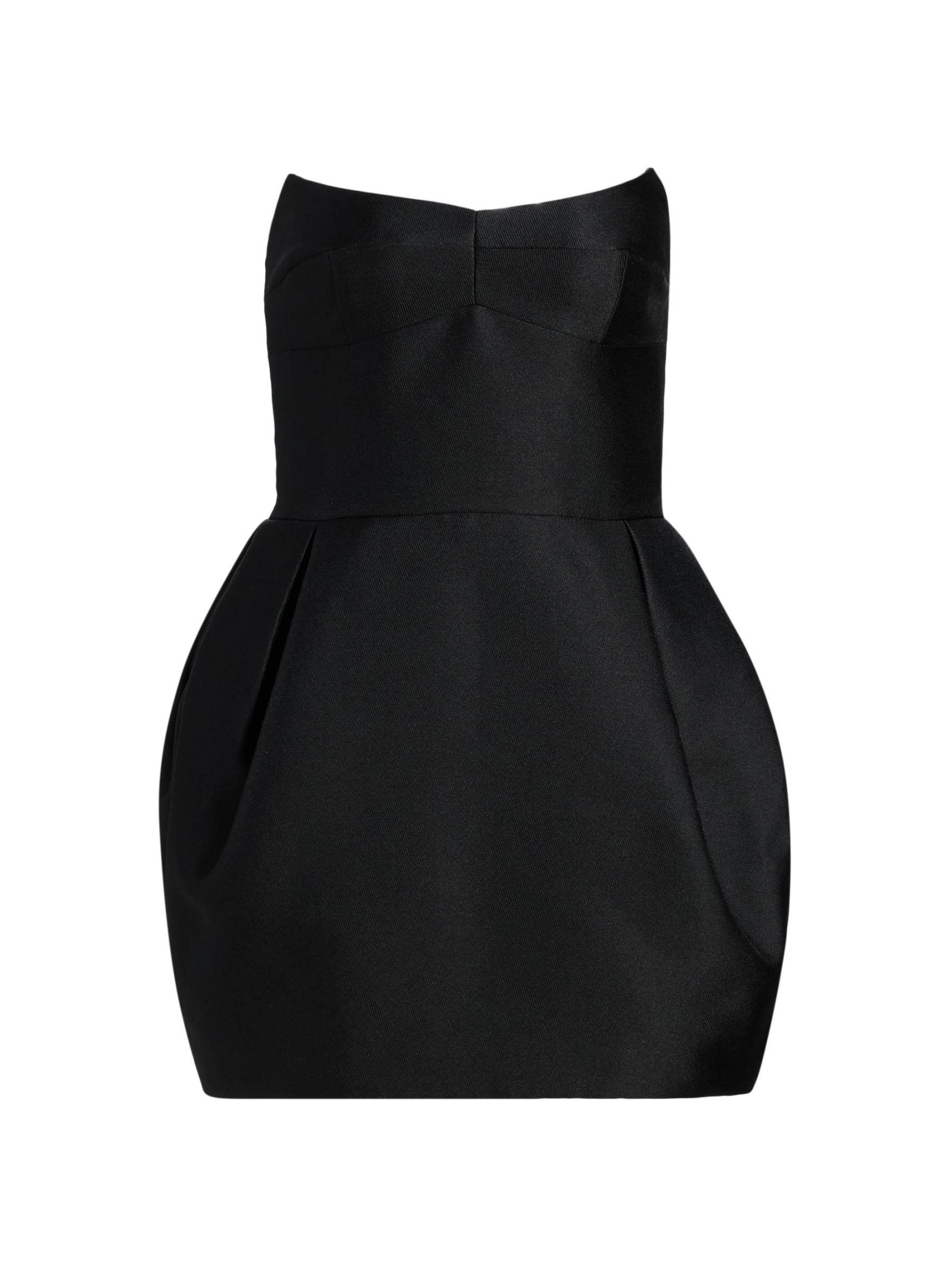 يجمع فستان Bowery الصغير من Amanda Uprichard بين الصدّار الضيق بدون حمالات وتنورة التوليب الديناميكية، مما يخلق صورة ظلية مثيرة.