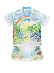 صُنع هذا القميص من الدار البيضاء من القطن بطبعة ألوها المصورة المستوحاة من هاواي، ويتميز بياقة المخيم وجيب خارجي على الصدر.طوق المخيم أكمام قصيرة جيب خارجي على الصدر إغلاق بأزرار أمامية قطن بنسبة 100% يُغسل في الغسالة صُنع في إيطاليا