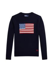 هذه السترة ذات الرقبة المستديرة المصنوعة من الكشمير من بولو رالف لورين مزينة بالعلم الأمريكي الشهير الذي يتميز بنجوم مطرزة.