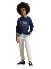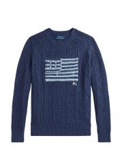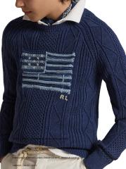 تتميز سترة بولو رالف لورين الأيقونية التي تحمل العلم بمجموعة من الأنماط المحبوكة والعناصر المطرزة يدويًا وتفاصيل خياطة الجلد وخياطة سلسلة «RL» في الأمام.فتحة رقبة مستديرة أكمام طويلة تسحب قطن يُغسل في الغسالة مستوردة