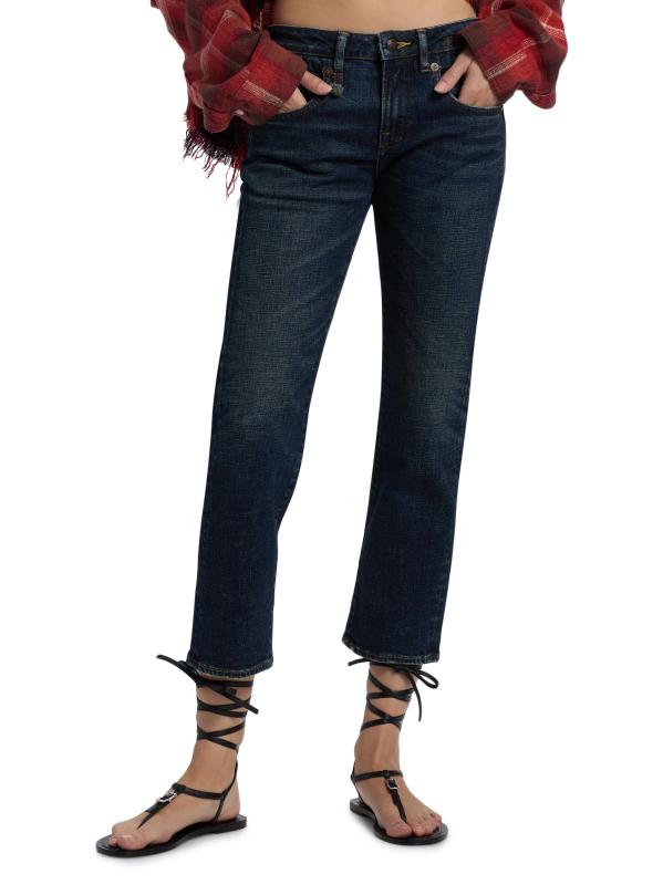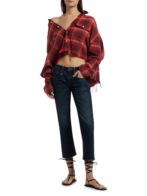 بنطال «بوي» القصير ذو الجيوب الخمسة من R13، والمصنوع من مزيج القطن، مصمم بشكل مستقيم الساق ومزين بشعيرات.