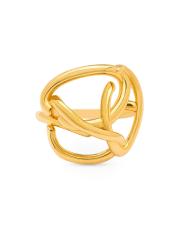 خاتم Braided O المطلي بالذهب عيار 24 قيراطًا من أوسكار دي لا رنتا يحيط بالإصبع بمظهر منحوت.نحاس مطلي بالذهب عيار 24 صُنع في إيطاليا