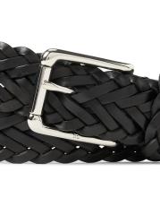 حزام رالف لورين بيربل ليبل مصنوع من جلد فاتشيتا المضفر مع مشبك فضي لامع.