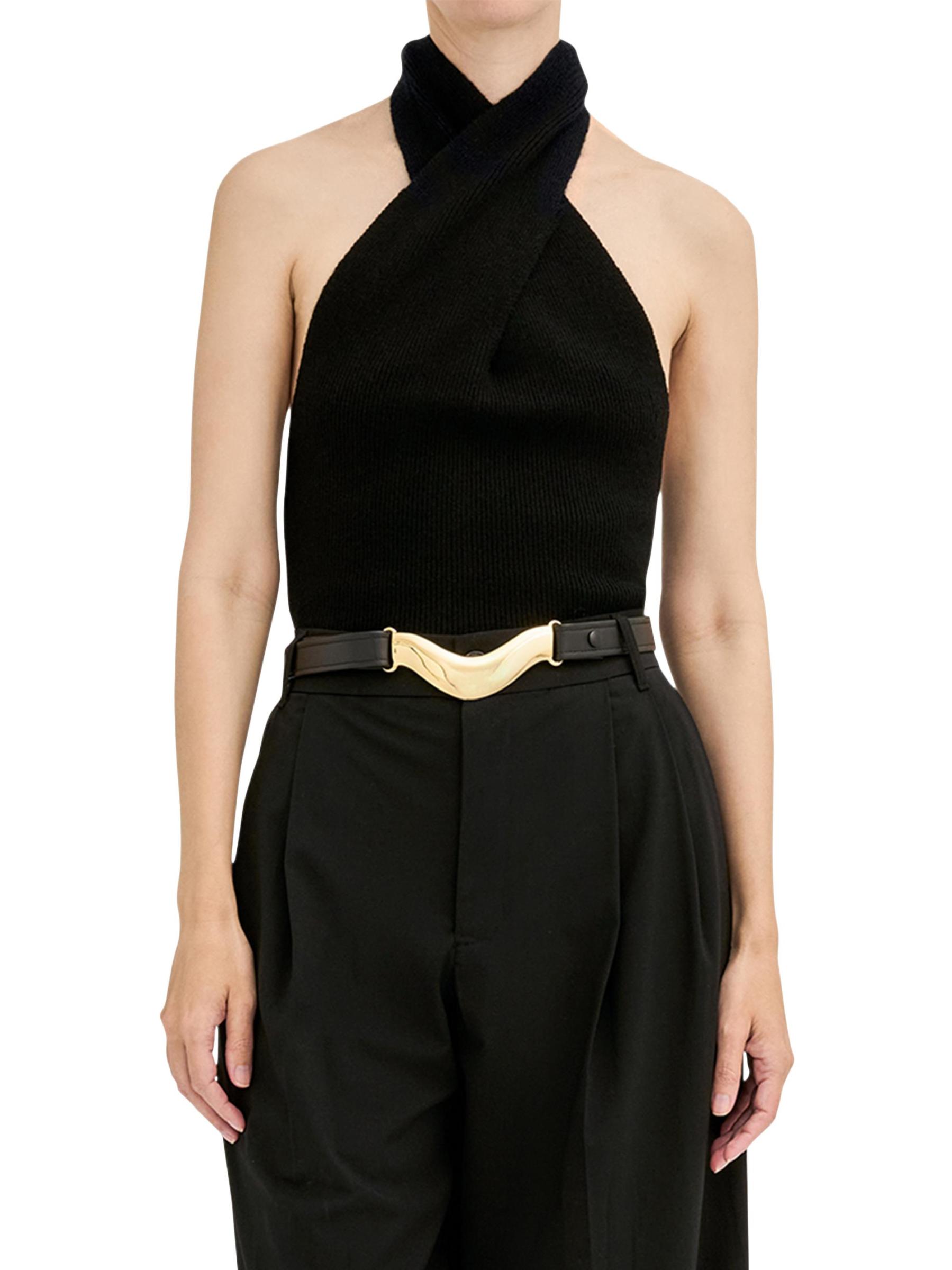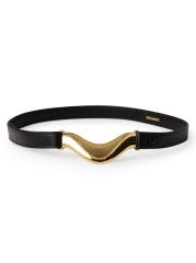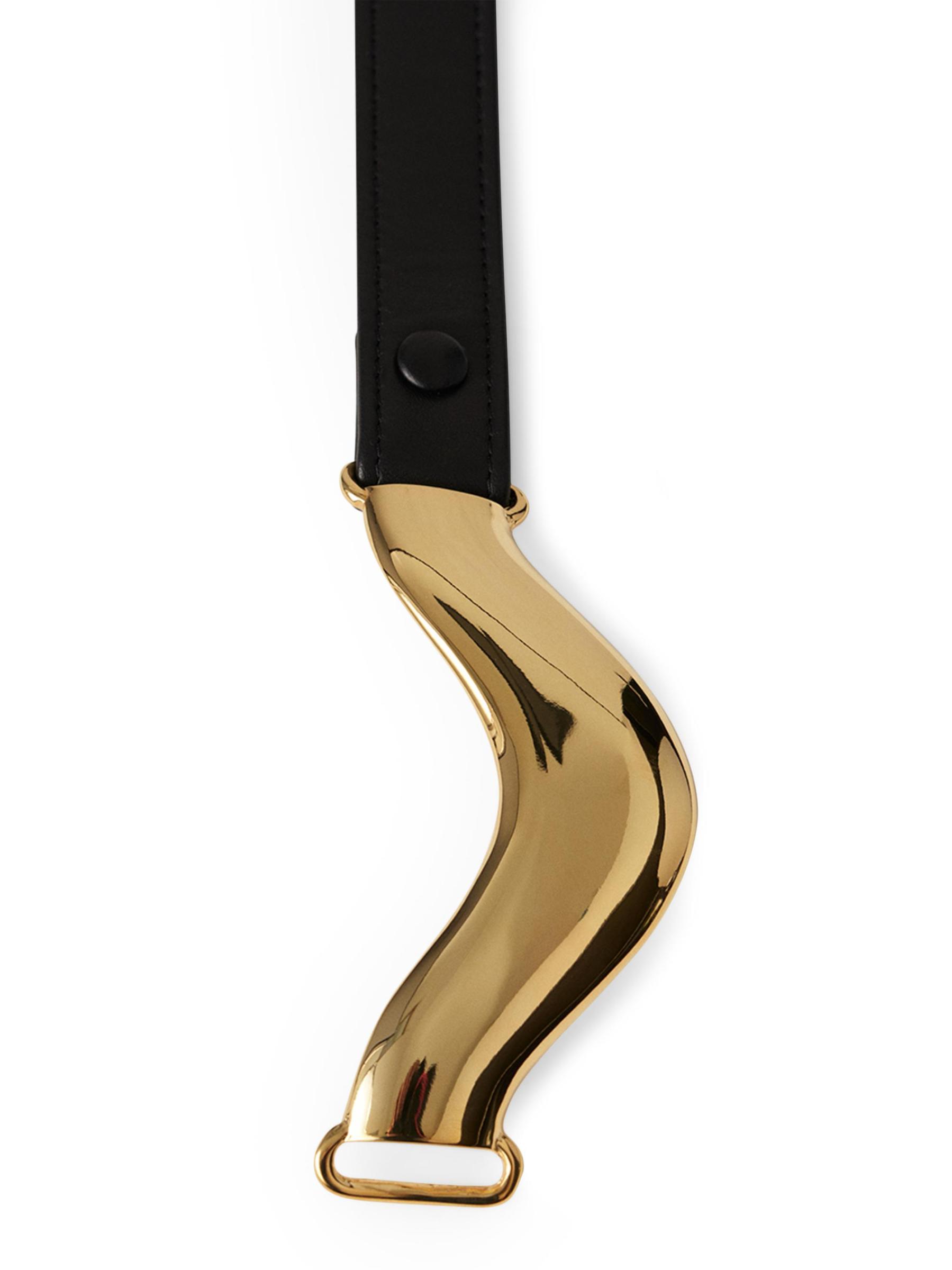 حزام Brancusi المصمم حسب المقاس من Déhanche مصنوع من الجلد، ويتميز بأجزاء معدنية ذهبية اللون مع تفاصيل الشعار.