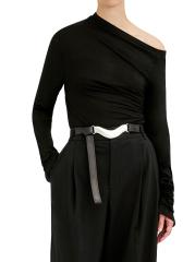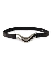 حزام Brancusi هذا من Déhanche مصنوع من الجلد ومصمم بأجزاء معدنية منحوتة باللون الفضي.أجهزة سيلفرتون إغلاق بمشبك جلد صُنع في إيطاليا