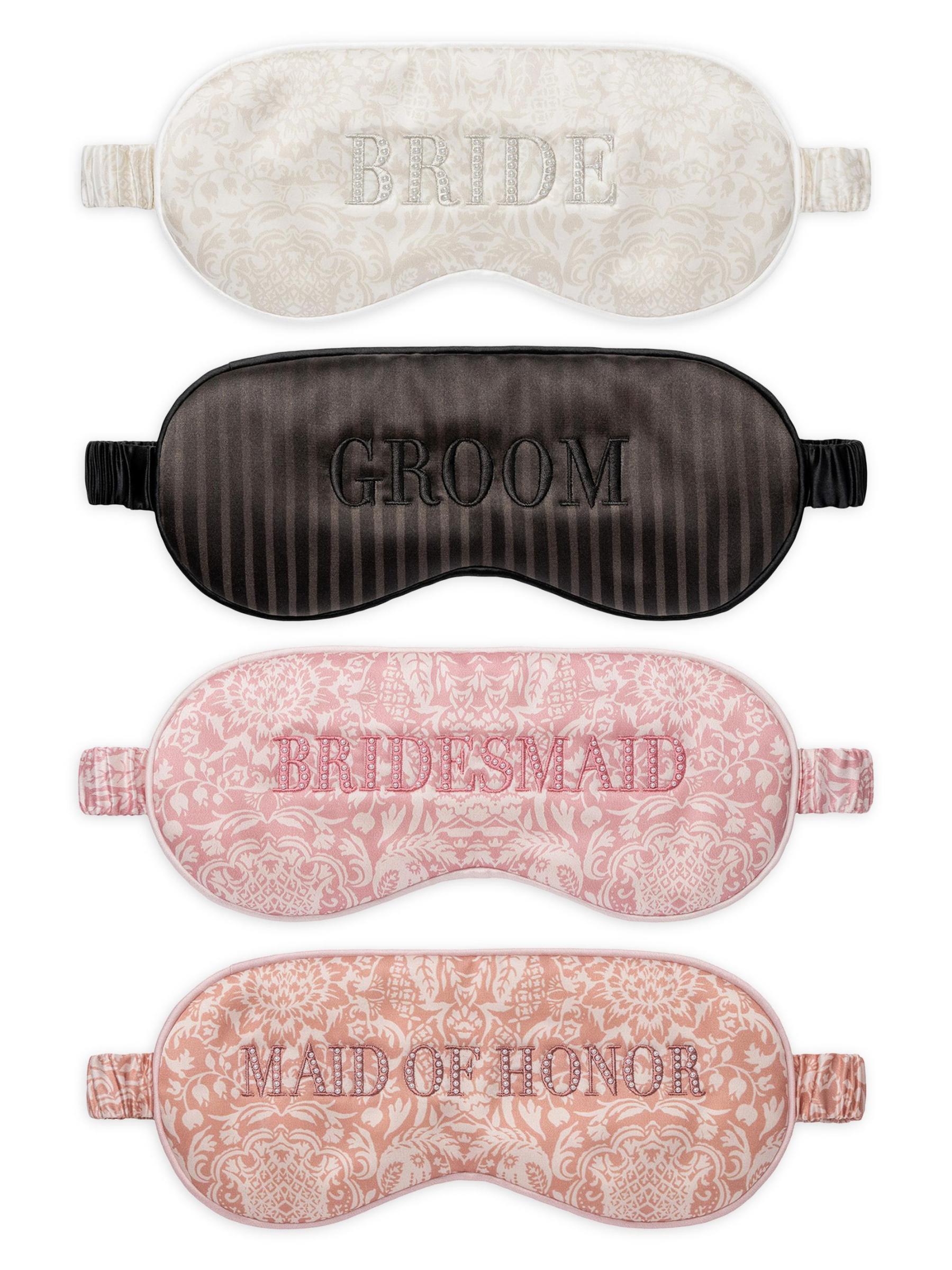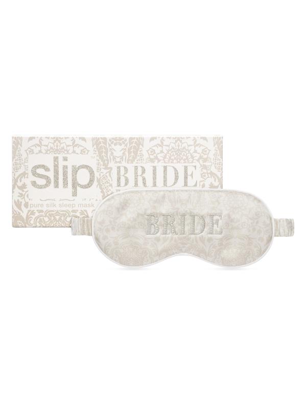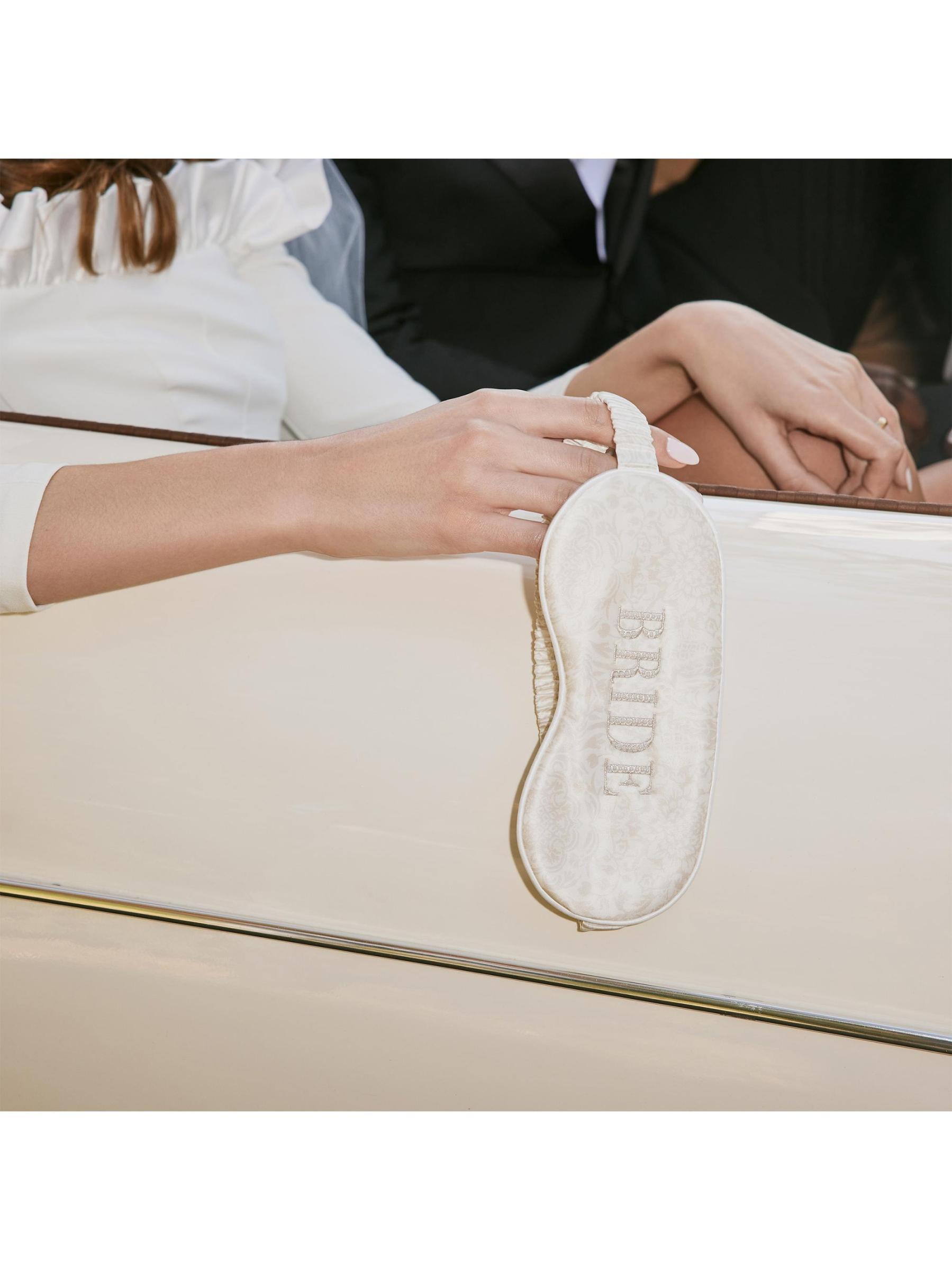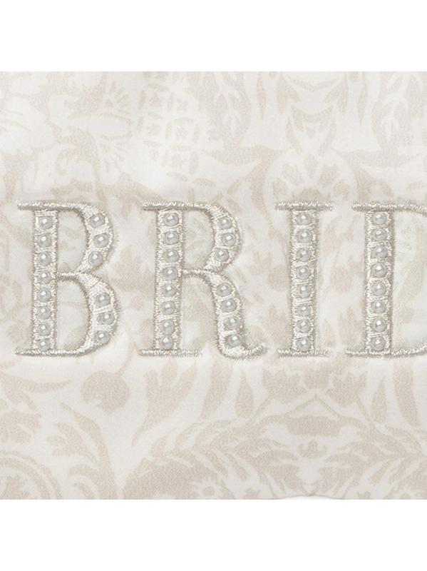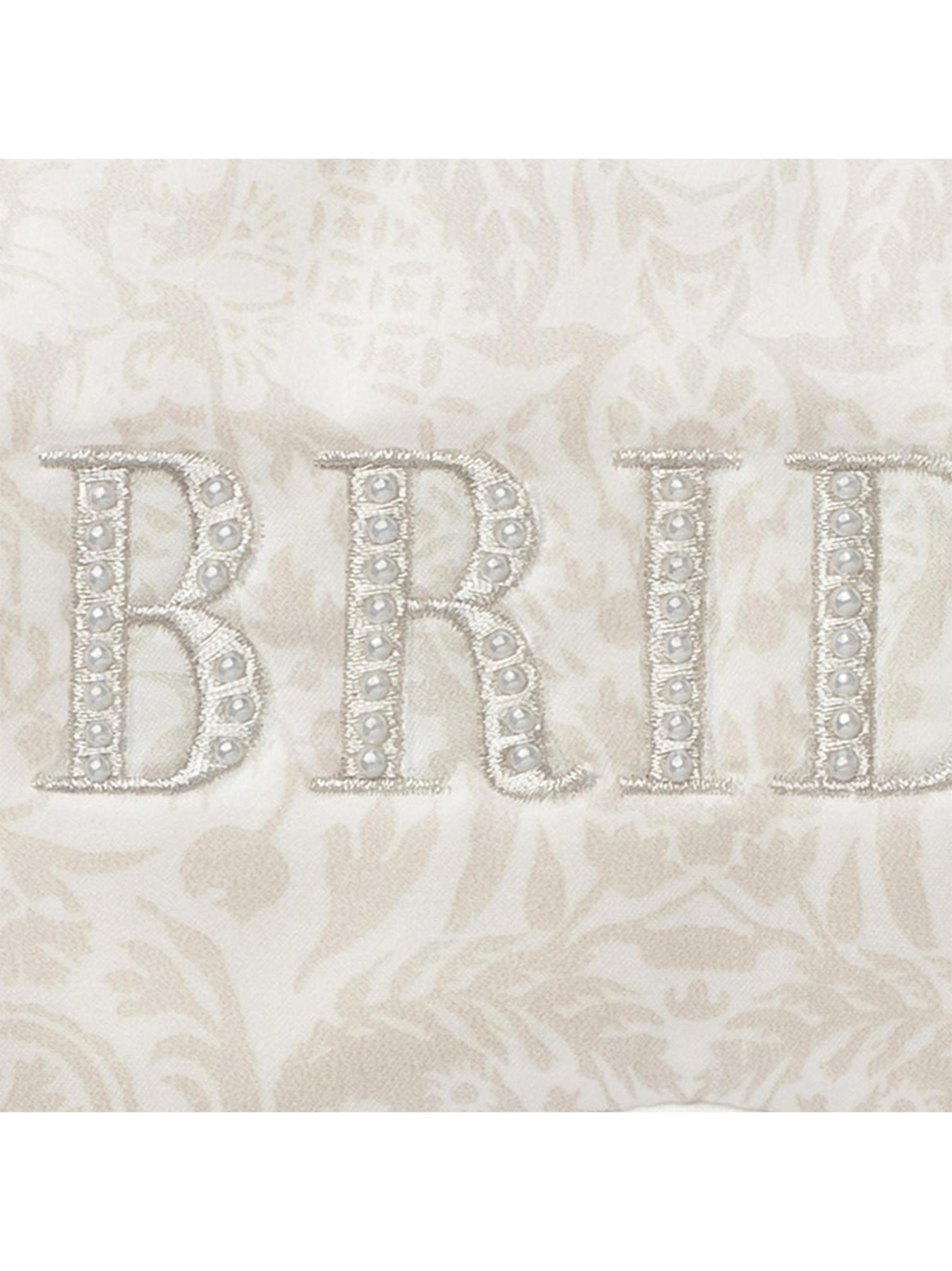 من مجموعة فساتين الزفاف. صُنع قناع النوم Slip هذا من حرير مولبيري الفاخر، وهو مطرّز بعبارة «العروس» ومزيّن بزخارف مستوحاة من اللؤلؤ. حرير. مستوردة