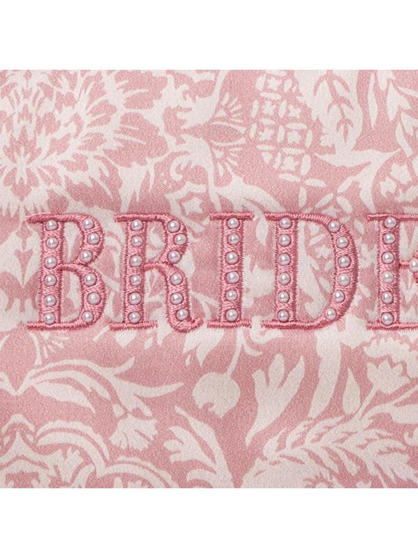 من مجموعة فساتين الزفاف. صُنع قناع النوم Slip هذا من حرير مولبيري الفاخر، وهو مطرّز بعبارة «Bridesmaid» ومزيّن بزخارف مستوحاة من اللؤلؤ. حرير. مستوردة