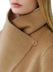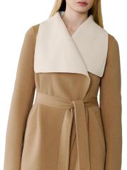 Kyo مصنوع من مزيج الصوف ويتميز بياقة منتشرة تحيط بواجهة ملفوفة وحزام قابل للإزالة وجيوب ضيقة.طوق سبريد أكمام طويلة وأساور منقسمة جيبان جانبيان إغلاق بأزرار أمامية ورباط على الخصر 70% صوف/ 30% بولياميد تنظيف جاف مستوردة