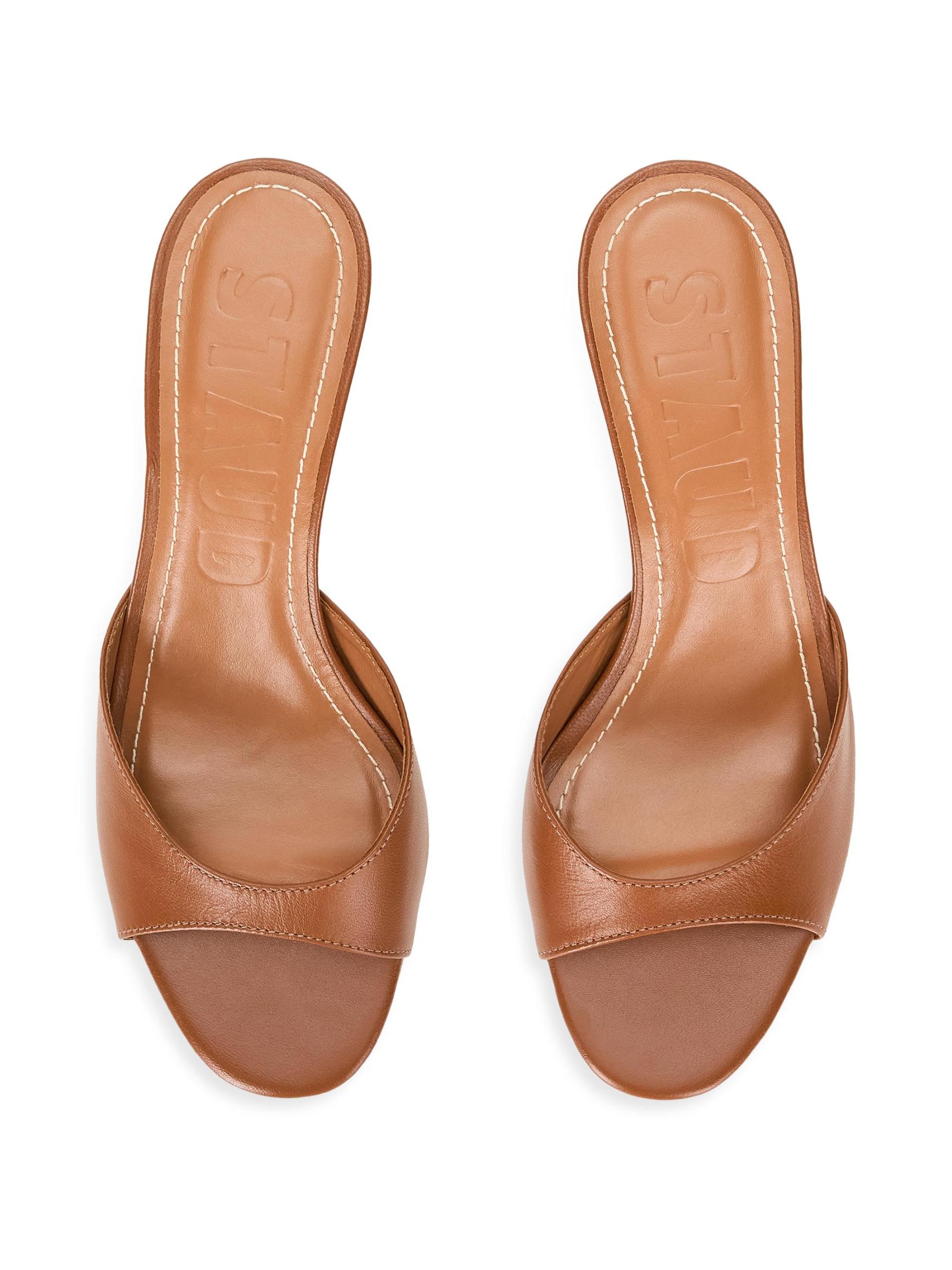 تتميّز أحذية بريجيت من Staud المصنوعة من الجلد بتصميم مفتوح عند الأصابع وكعب إسفين منحوت.