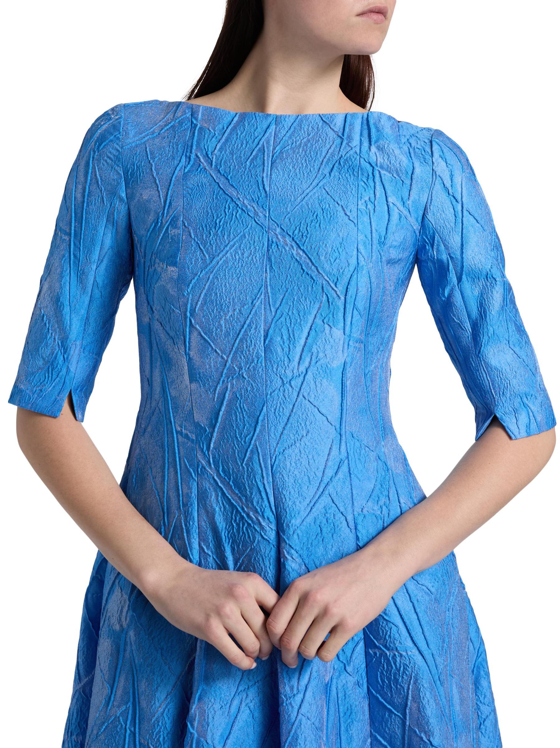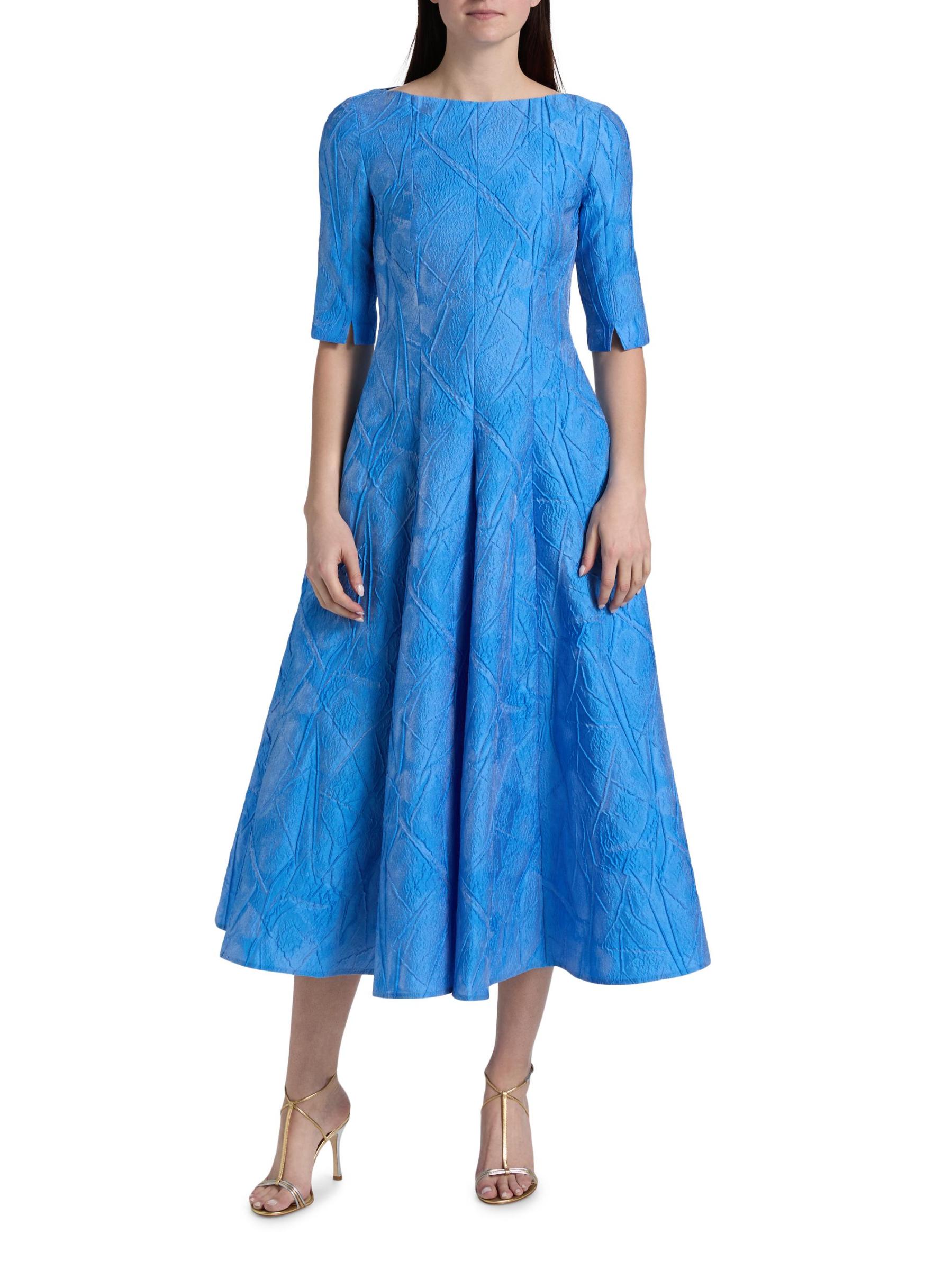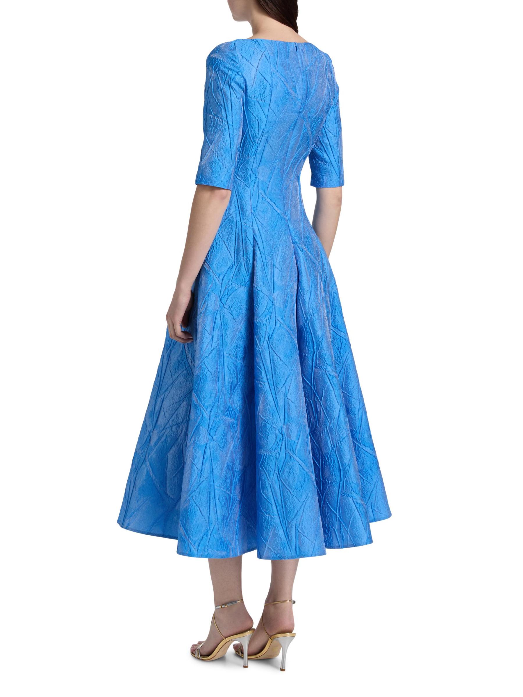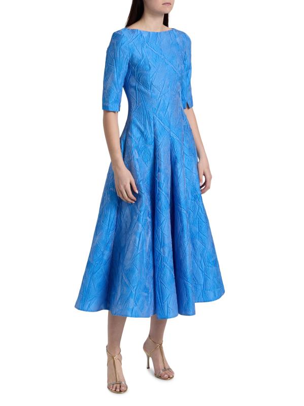فستان بروكيد بفتحة رقبة على شكل قارب بطول الشاي
