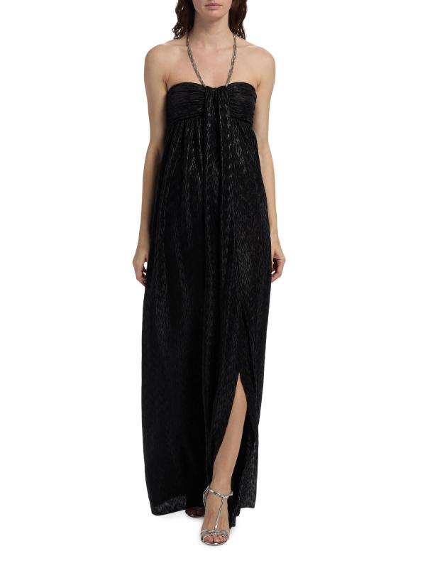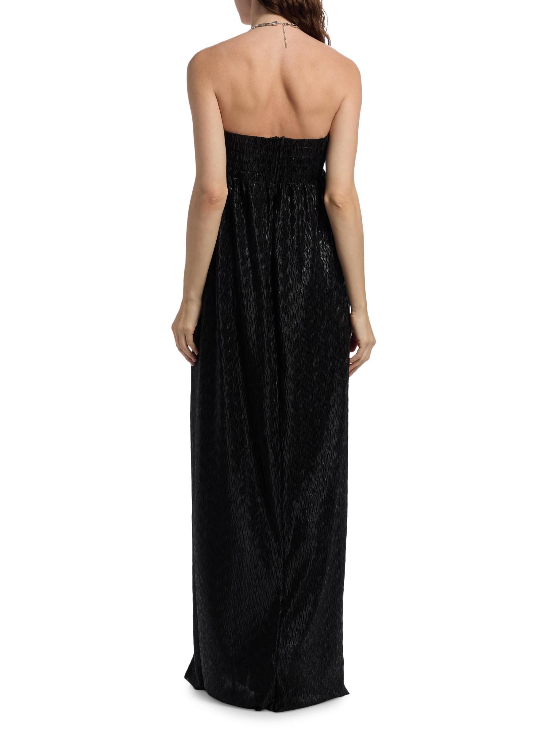 يتميز فستان Bruna بدون حمالات من Sabina Musáyev بحزام سلسلة قابل للإزالة لتصميم متعدد الاستخدامات. تم تصميم هذه الصورة الظلية الانسيابية والأنيقة بفتحة أمامية وخلفية مطرزة.