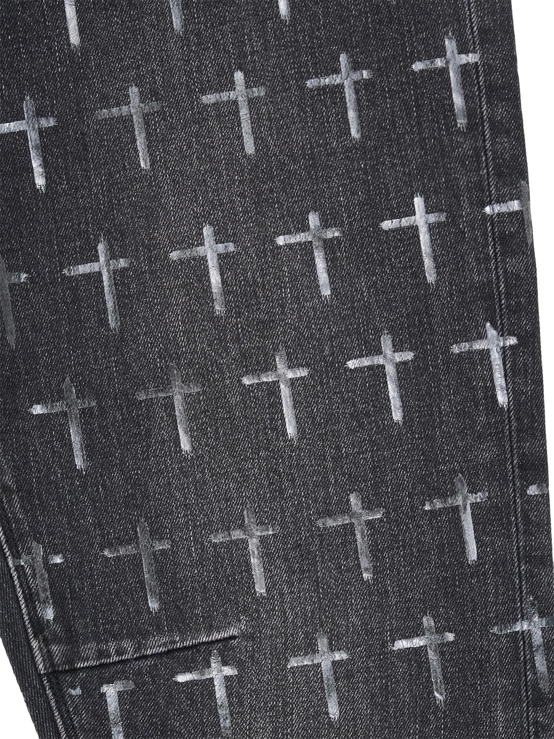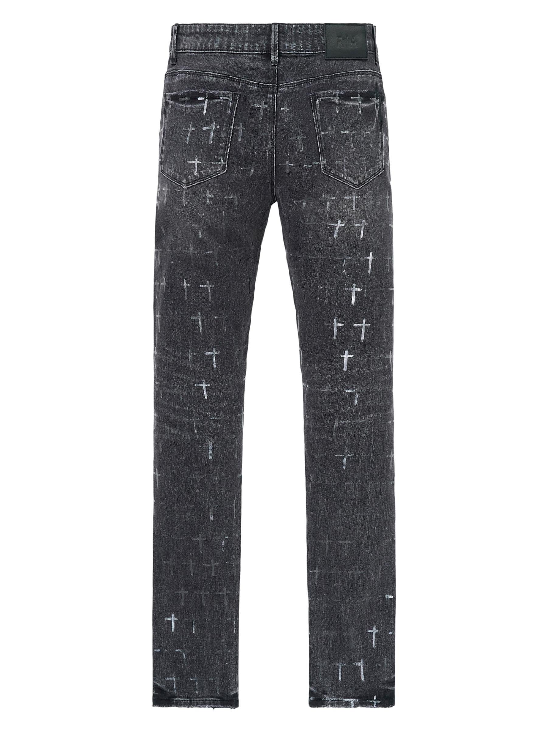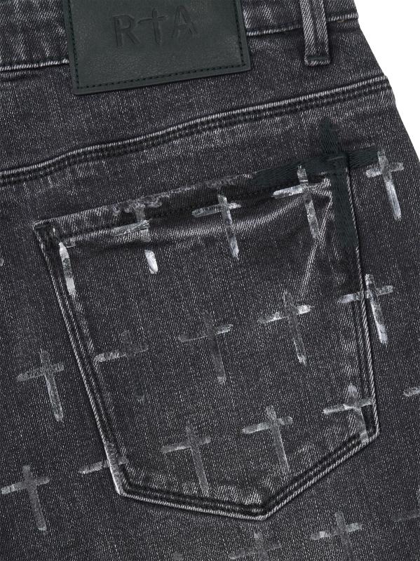 يتميّز بنطال «براينت جينز» هذا من آر تي إيه، المصمّم بقصّة نحيفة، بنقشة شعار متقاطع بشكل عام مع ركبة مقصوصة.