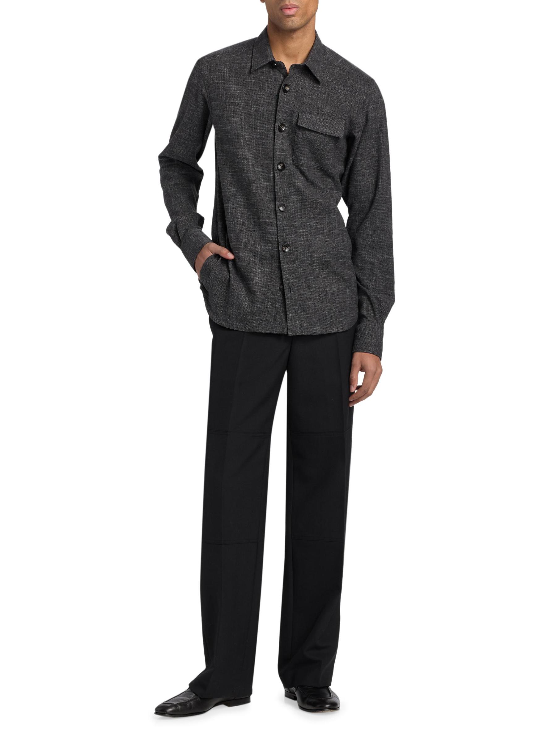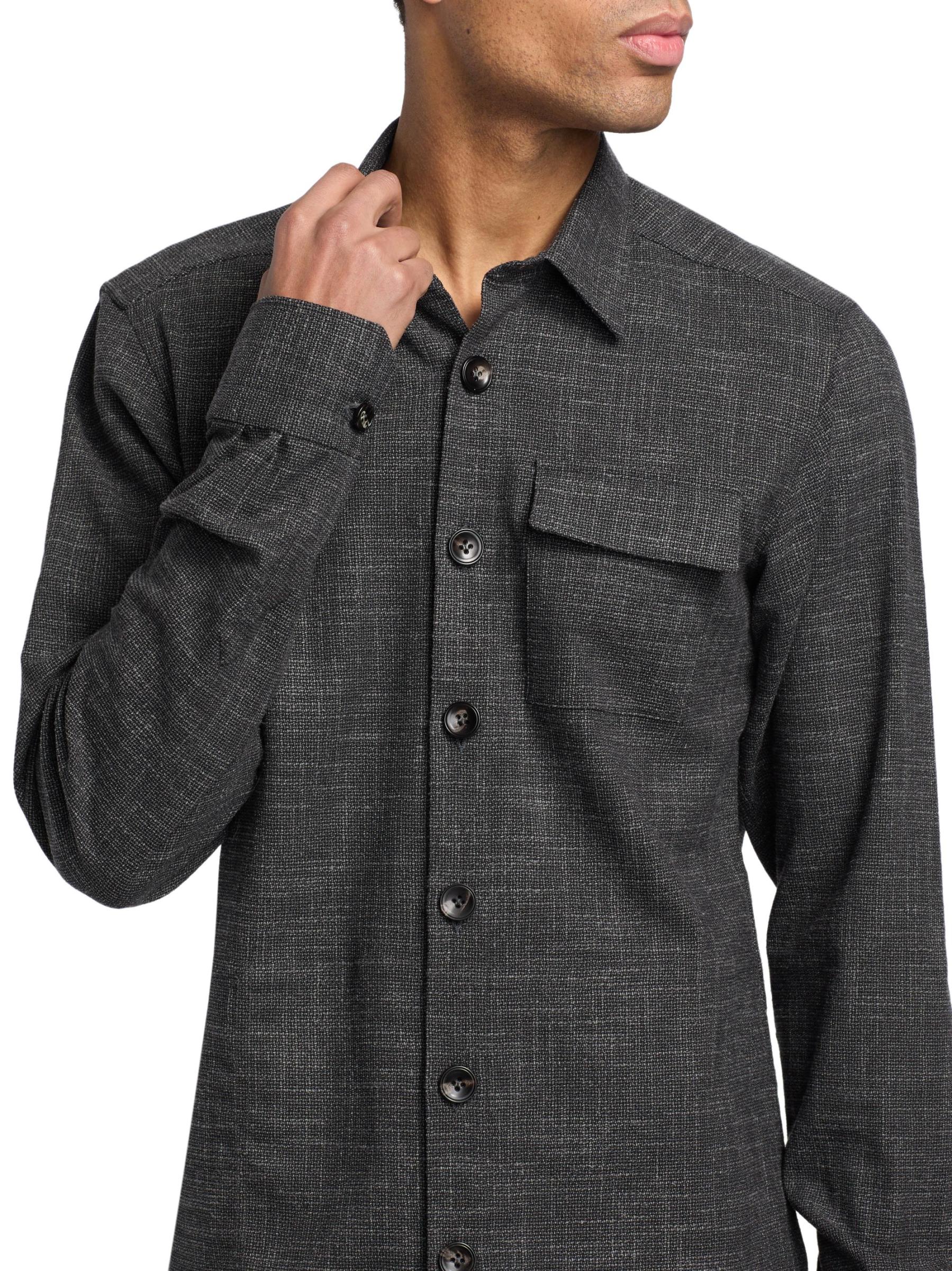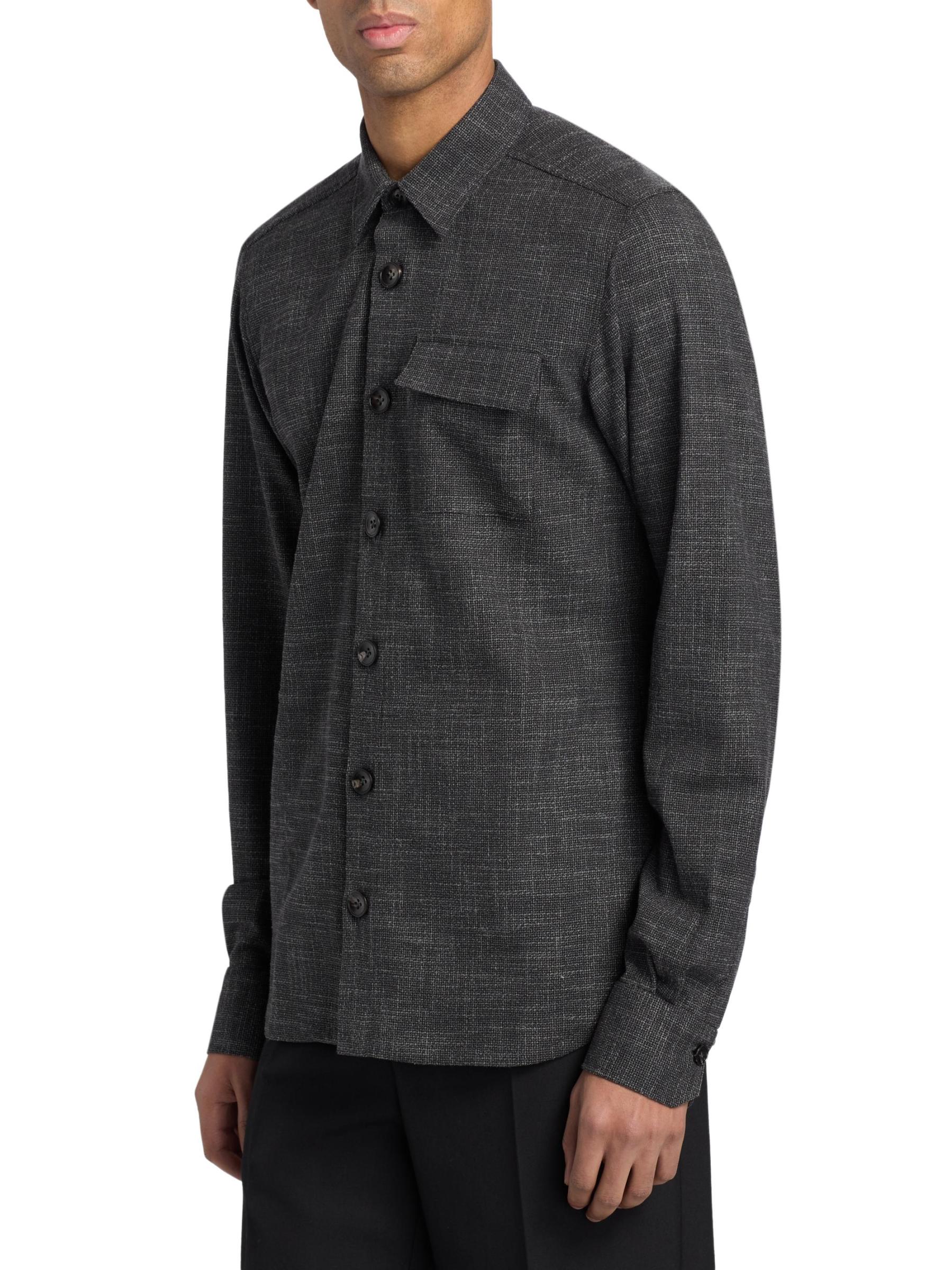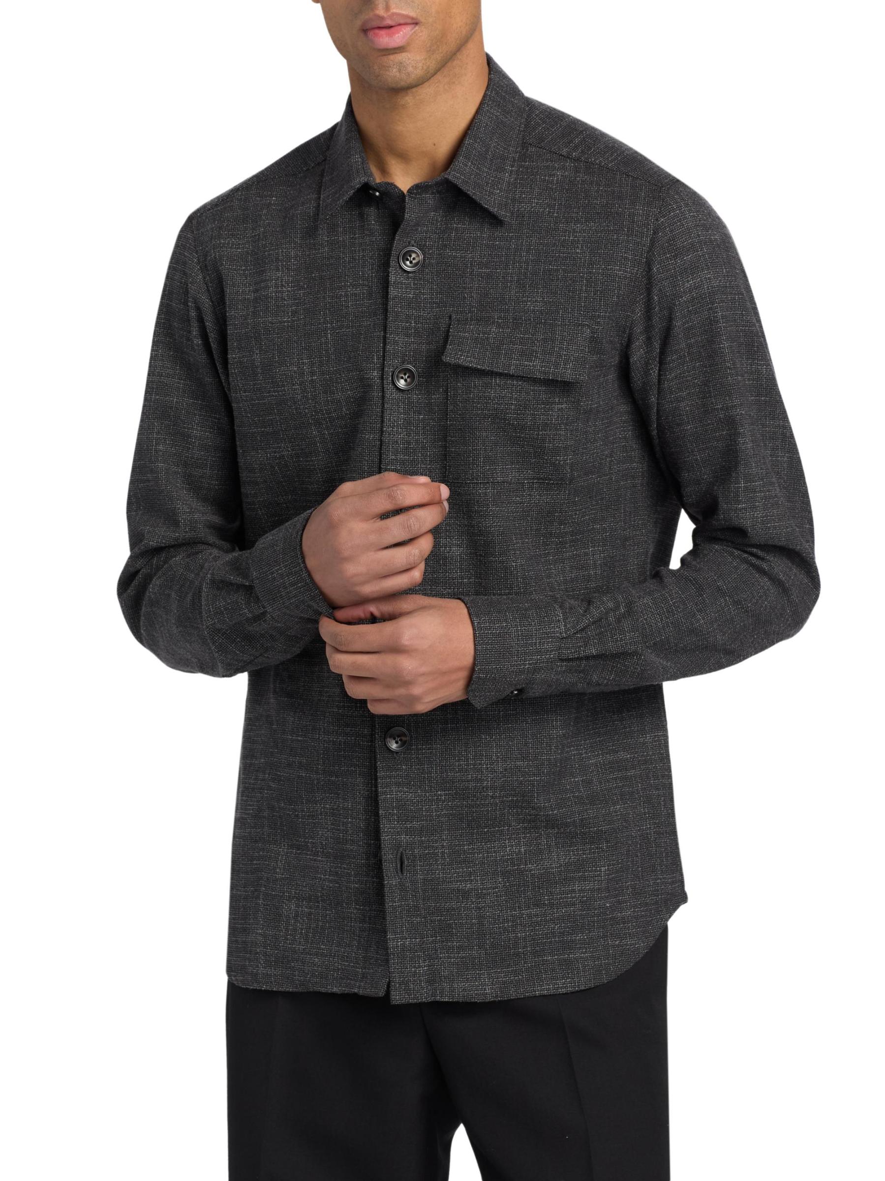 قميص Buba هذا من Kiton مصنوع من مزيج من الصوف البكر المرن والحرير في نسيج منقوش. تضفي الياقة المدببة وجيب على الصدر وفتحة الأزرار الأمامية هيكلًا لهذا الطراز.