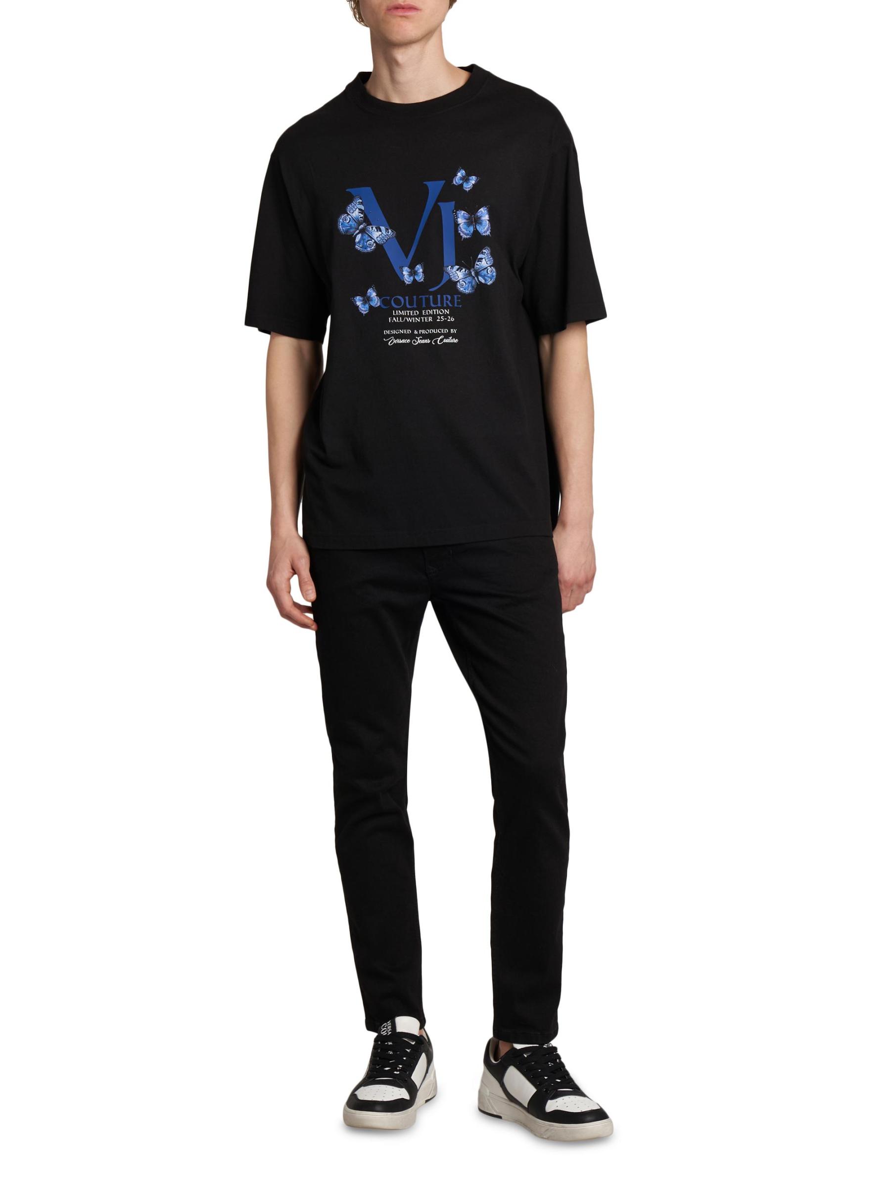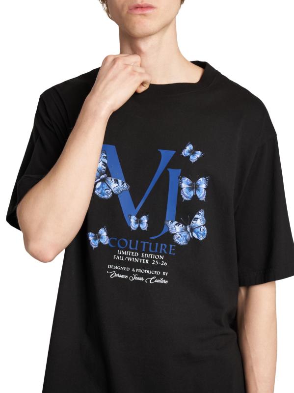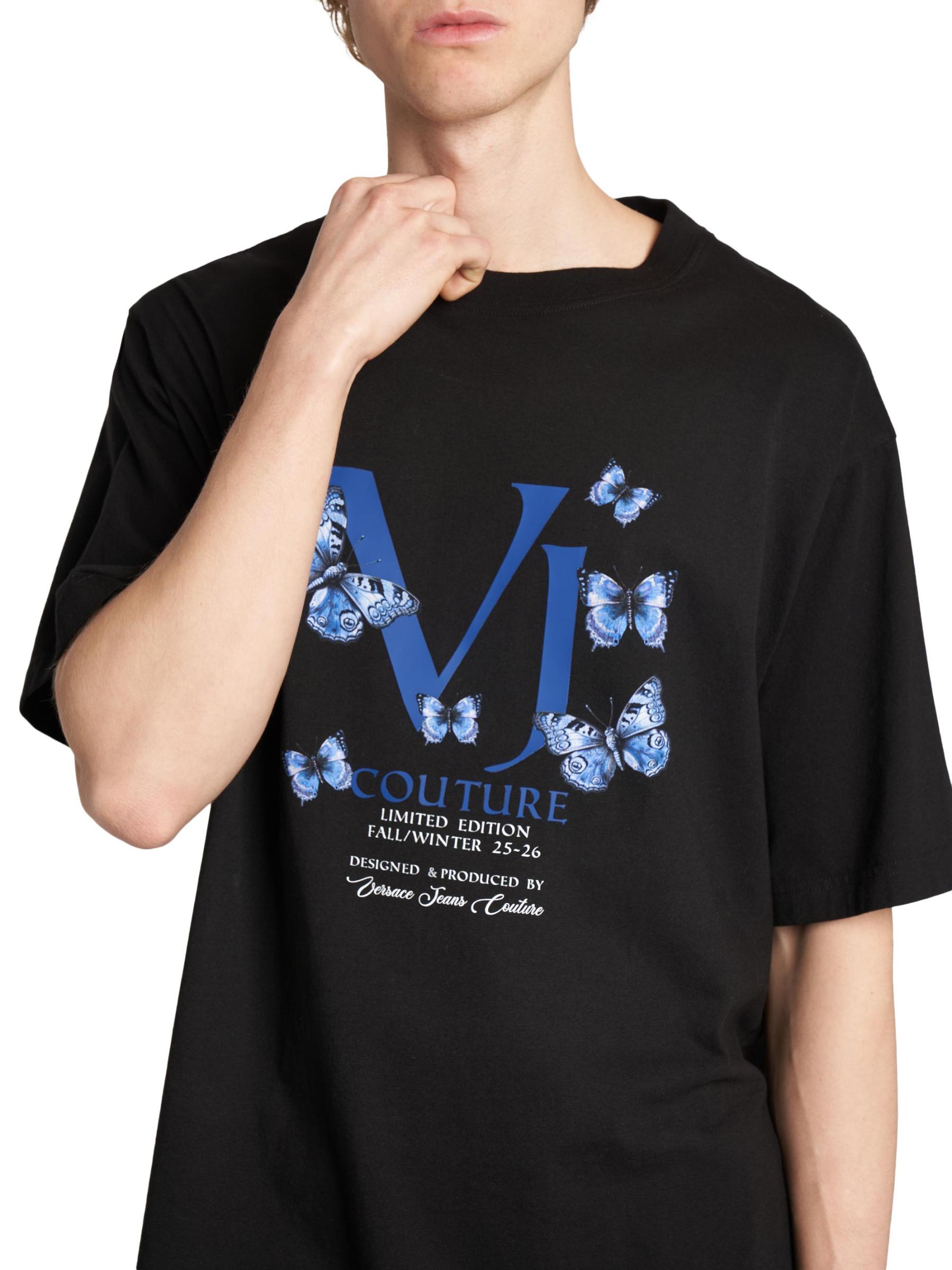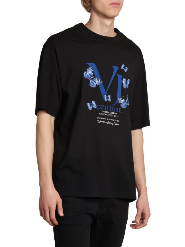 هذا التيشيرت ذو الرقبة المستديرة من فيرساتشي جينز كوتور مصنوع من القطن ومطبوع بالشاشة مزين بشعار الفراشة.