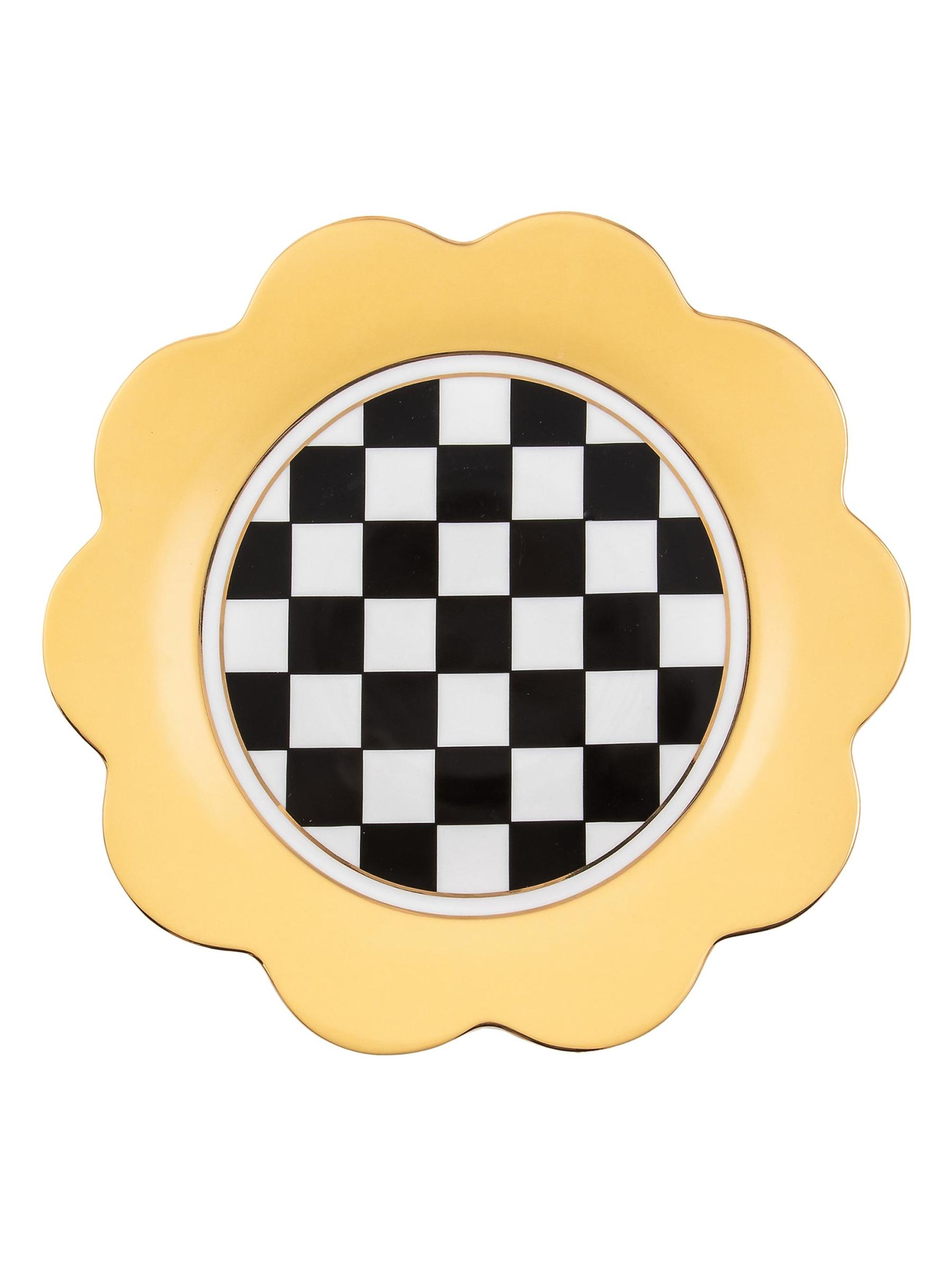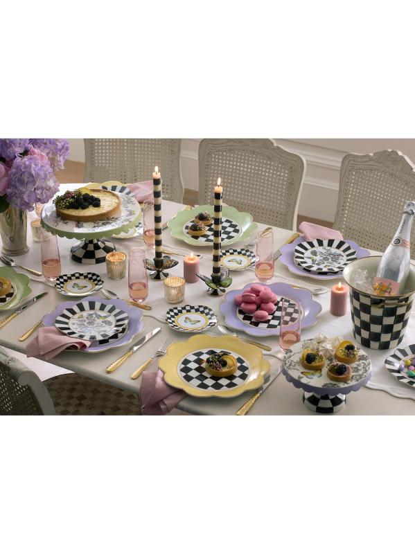 من مجموعة مرحاض الفراشة. جهز الطاولة بأجواء الربيع المنعشة باستخدام طبق العشاء الخزفي على شكل زهرة من Mackenzie-Childs، المزين بتلات الزبدة والزخارف الذهبية اللامعة. يضيف تصميمه الساحر لمسة من الأناقة والغرابة إلى أي تجربة طعام، مما يخلق جوًا جذابًا للوجبات اللذيذة.