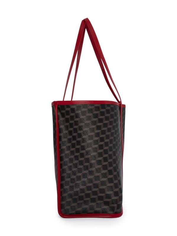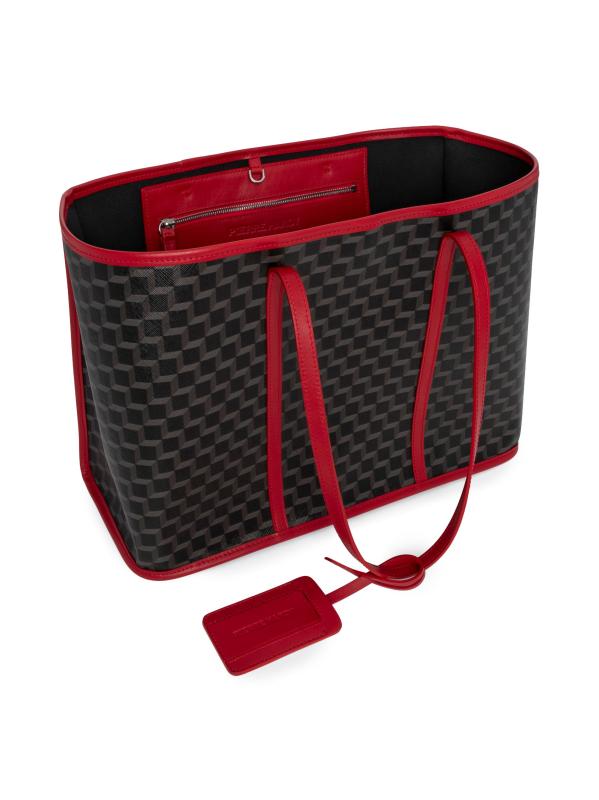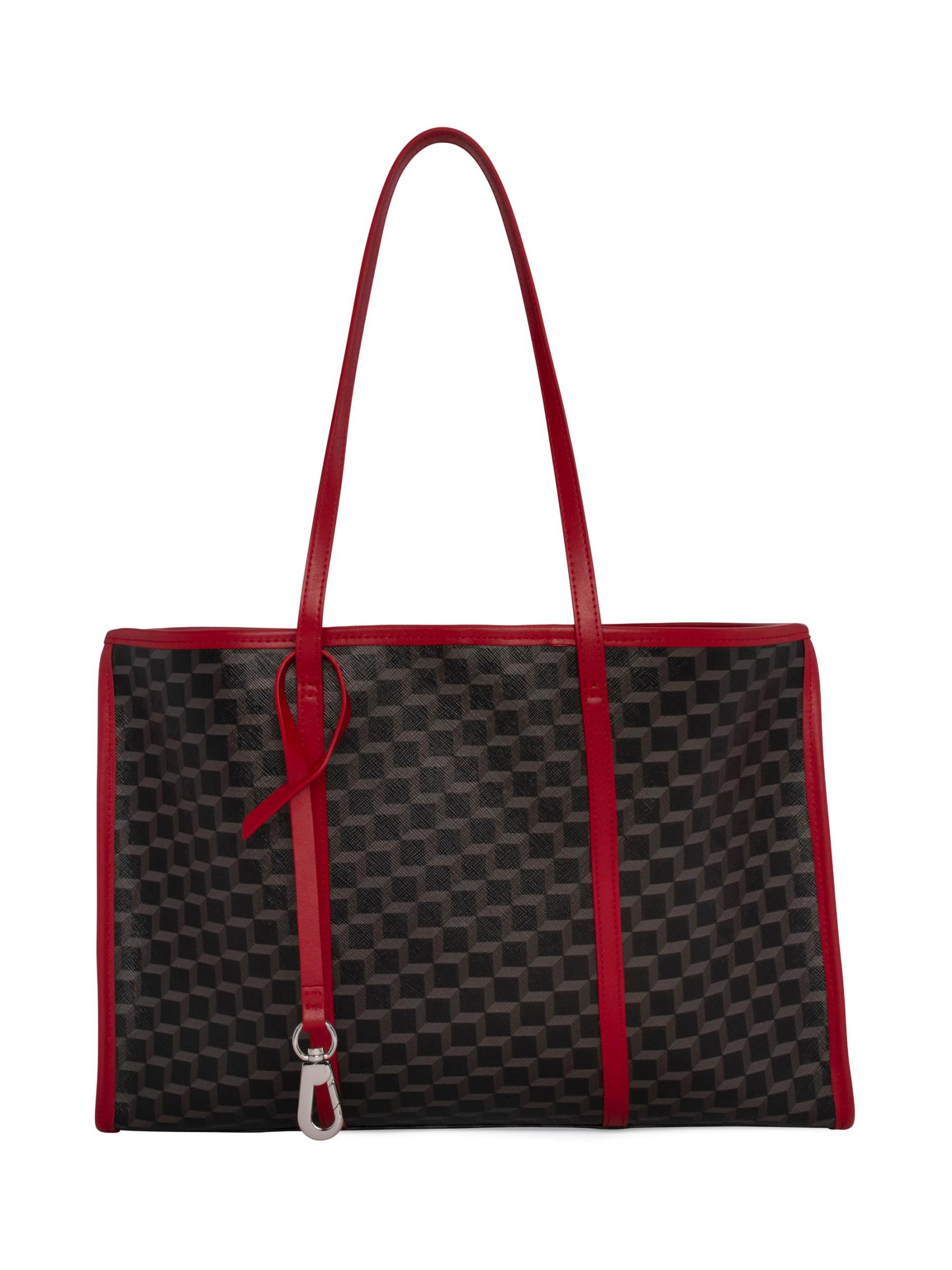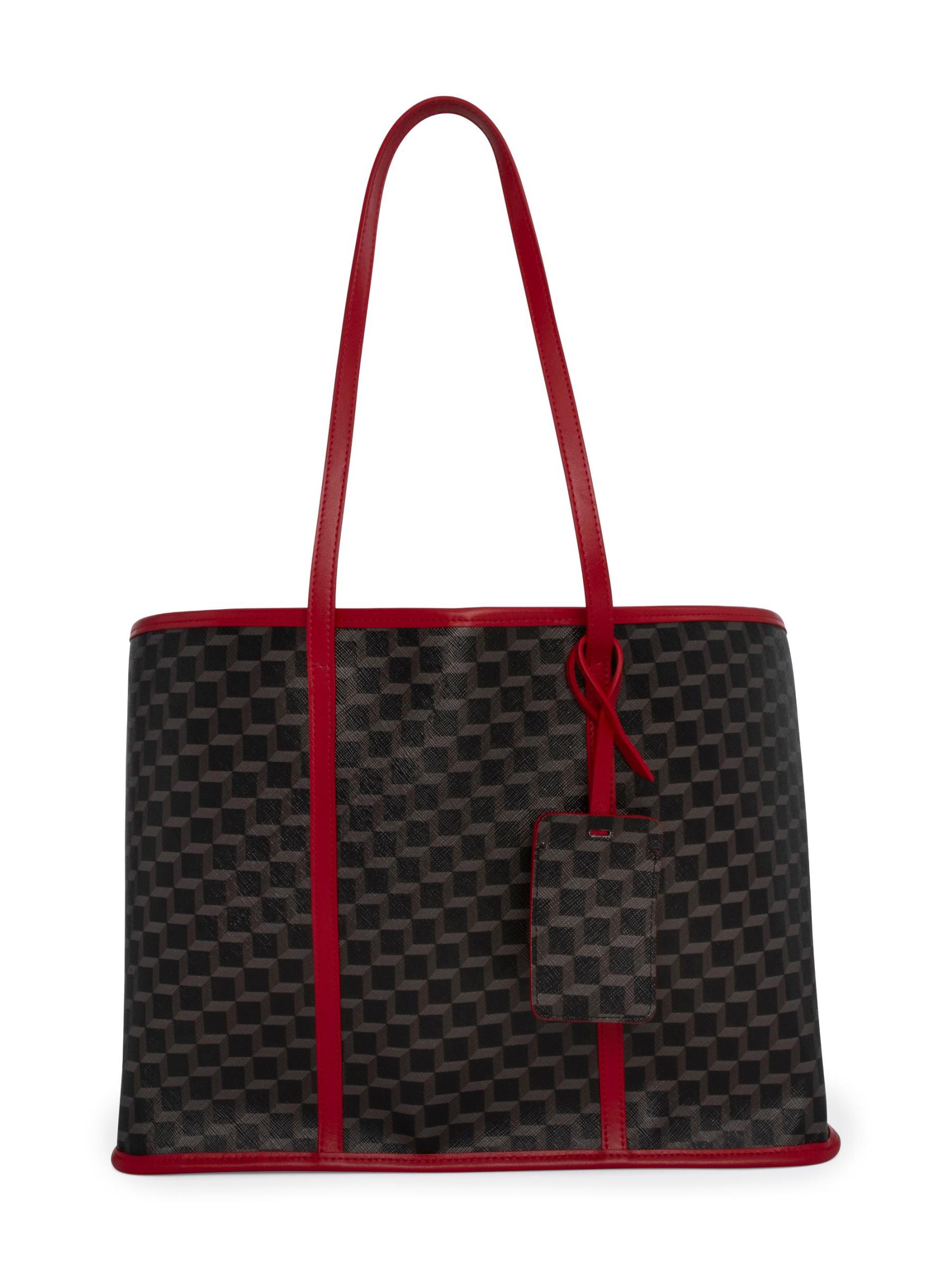 حقيبة كاب هذه من بيير هاردي مصنوعة من القماش مع زخرفة جلدية، وتتميز بطبعة ثلاثية الأبعاد ومفتاح قابل للإزالة وأقدام معدنية للحماية.