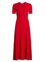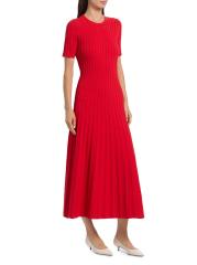يتميز فستان Jason Wu متوسط الطول الذي تم تشطيبه بغرزة الكابلات، ويمتاز بياقة مستديرة كلاسيكية وأكمام قصيرة.