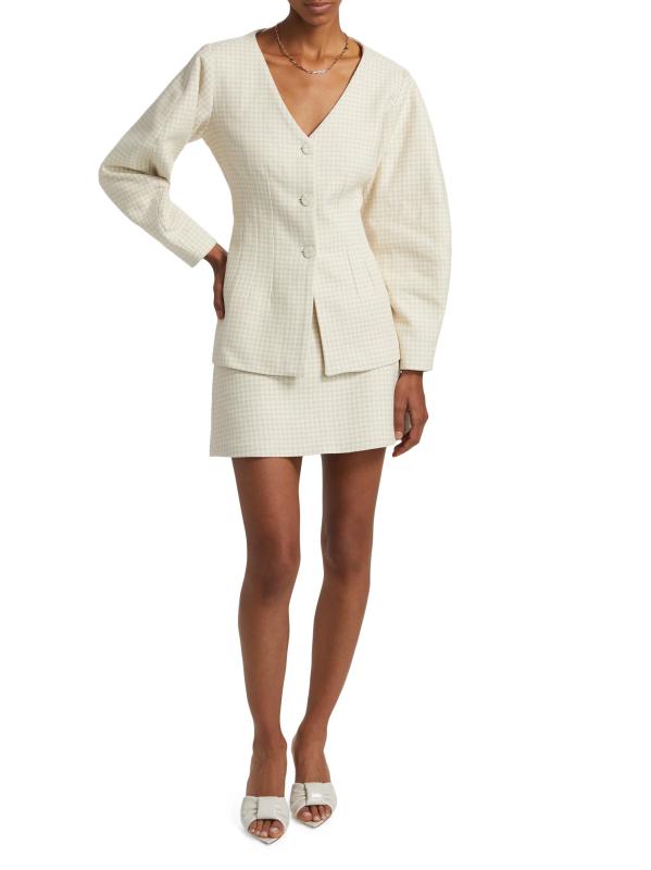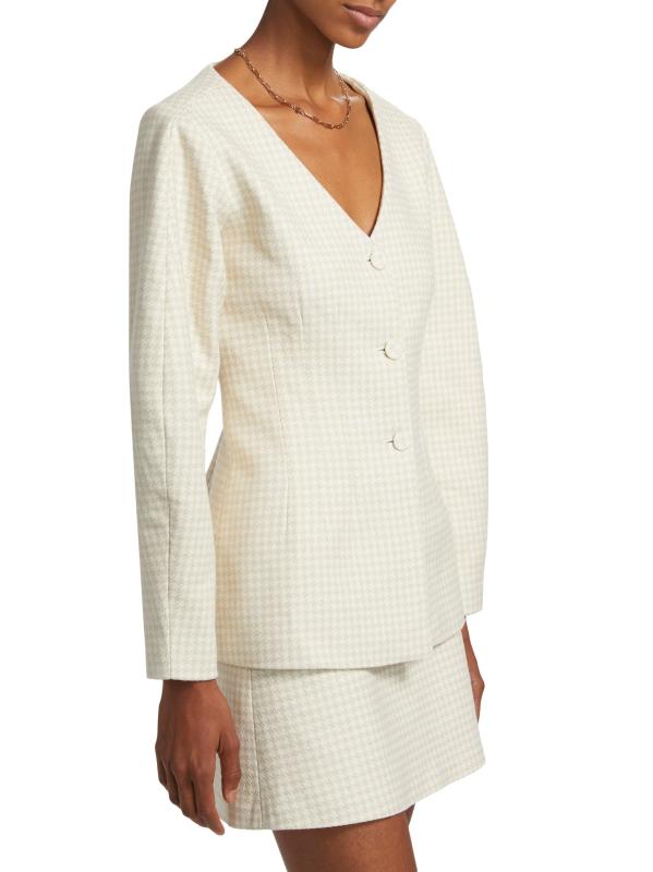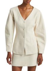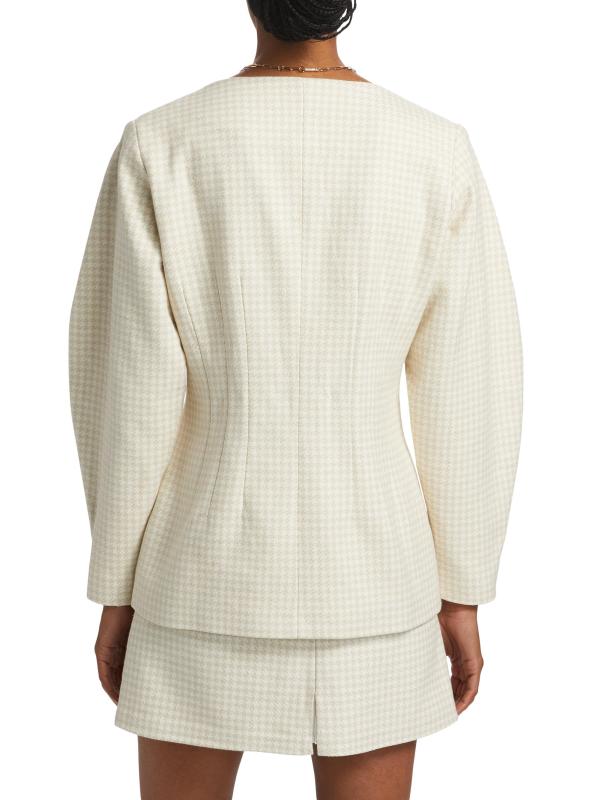من مجموعة كوباكابانا بلوز. تتميز سترة Catena المصممة خصيصًا من Atelier Crump بمقاس منحوت وفتحة رقبة على شكل حرف V وأزرار مغطاة ذاتيًا ولمسة نهائية ناعمة.