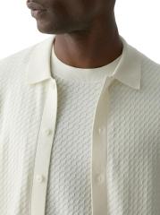 صُنع قميص Caim من Theory من القطن في نسيج محبوك، ويتميز بياقة واسعة وإغلاق بأزرار أمامية.