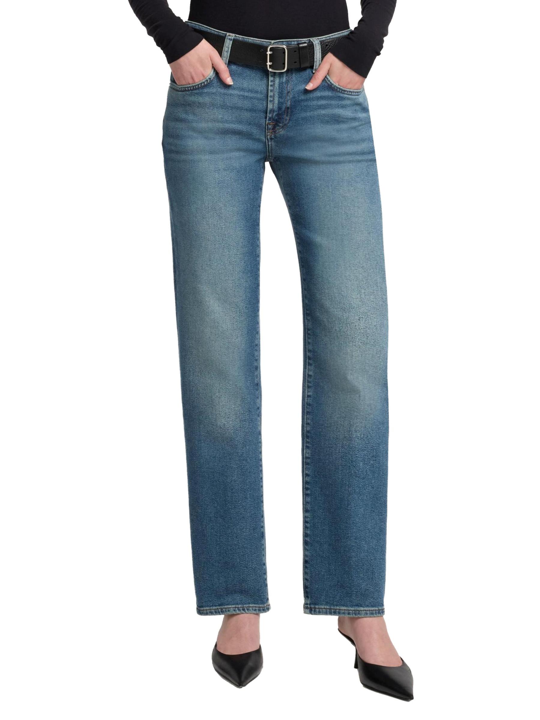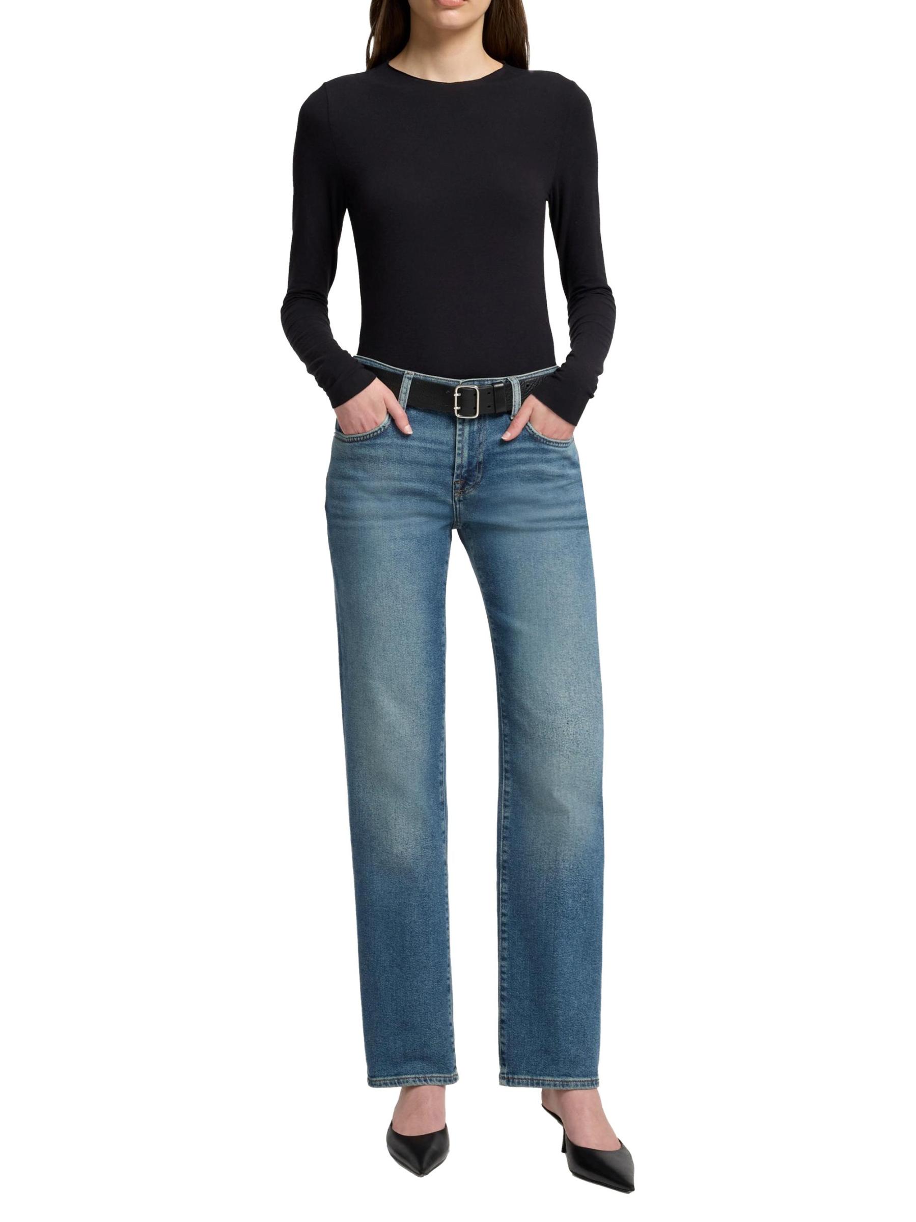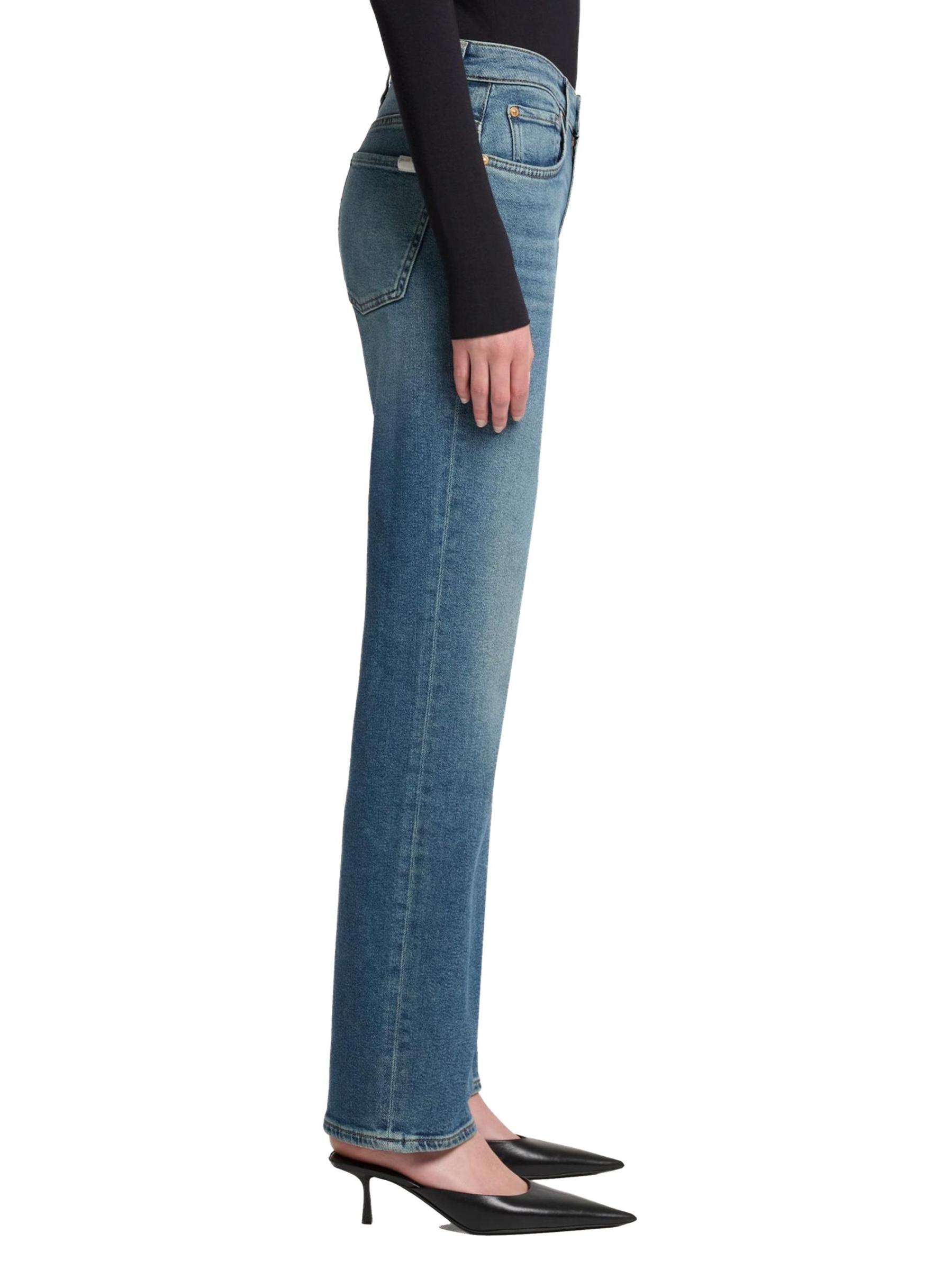 تتميز سراويل الجينز Calie متوسطة الارتفاع من 7 For All Mankind بتصميم مستقيم الساق وطراز كلاسيكي بخمسة جيوب ولمسة نهائية باهتة.