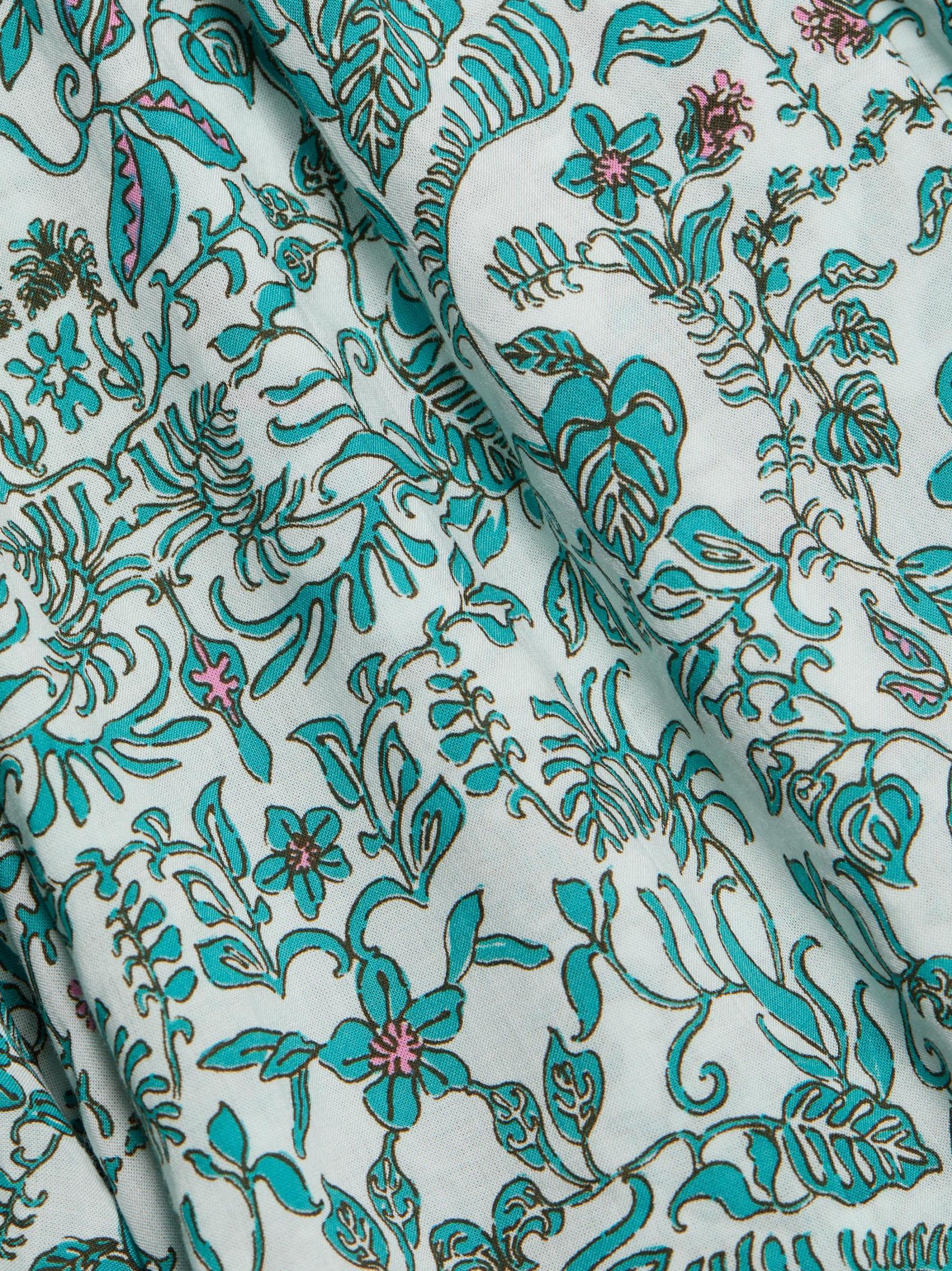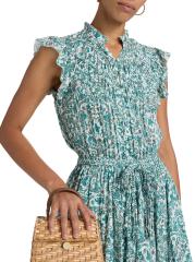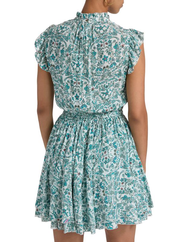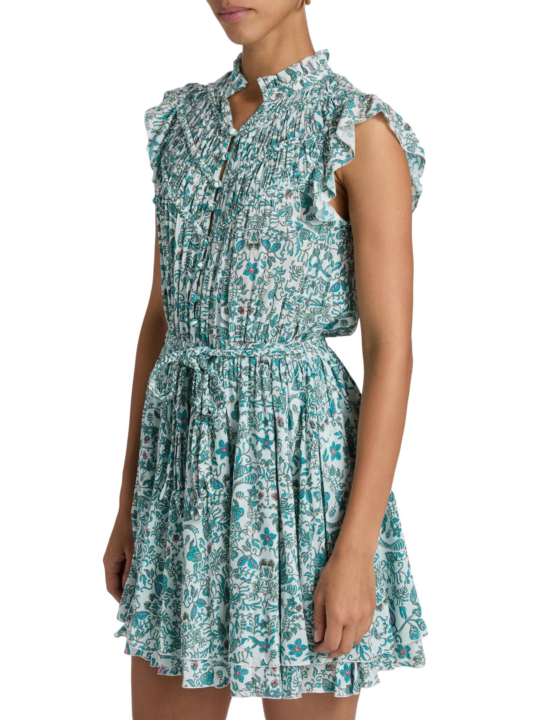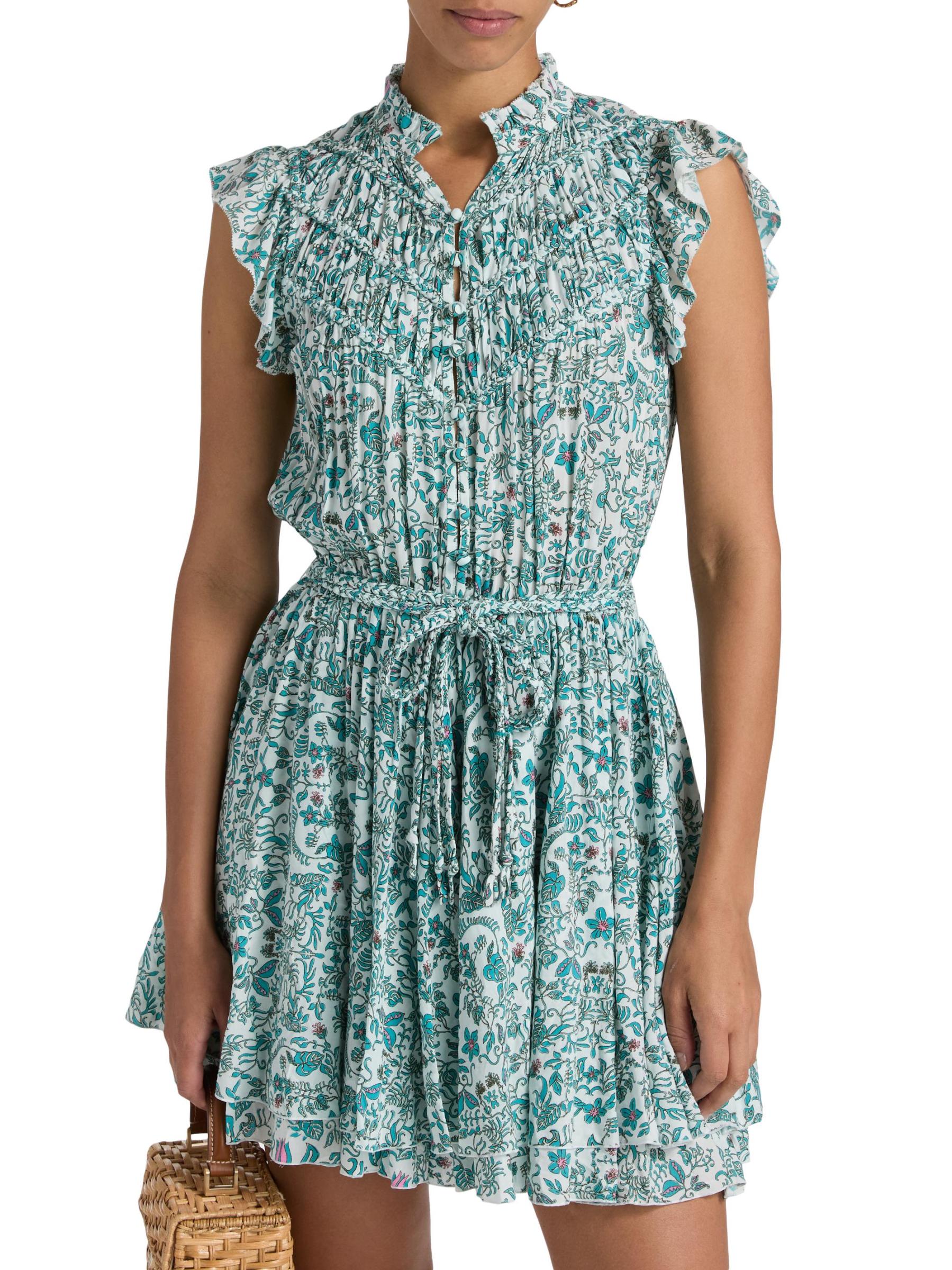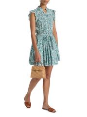 يتميز فستان Callie القصير من Poupette St Barth، الذي تم تشطيبه بالزهور، بتصميم مطوي وأكمام كاب وحزام حبل قابل للربط الذاتي.