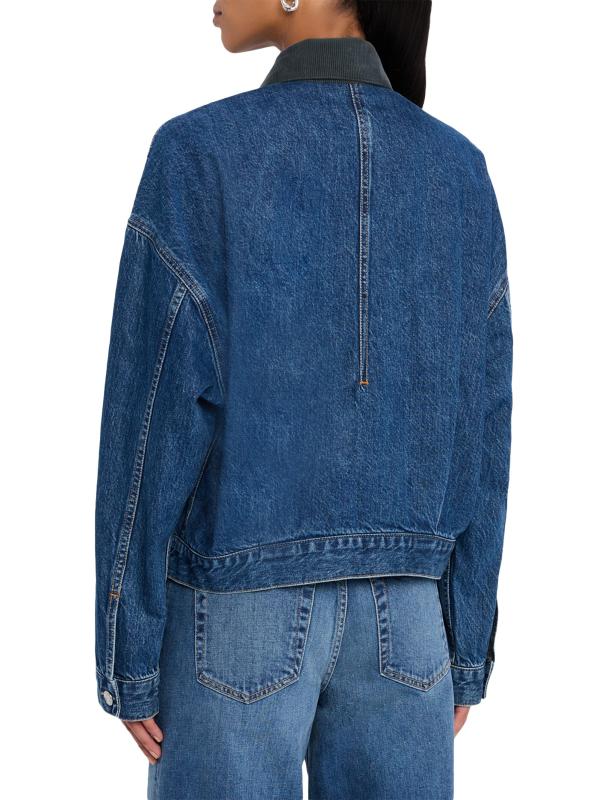 جاكيت Camden Garage من SLVRLAKE مصنوع من الدنيم المغسول ومزين بياقة سروال قصير بلون مغاير.