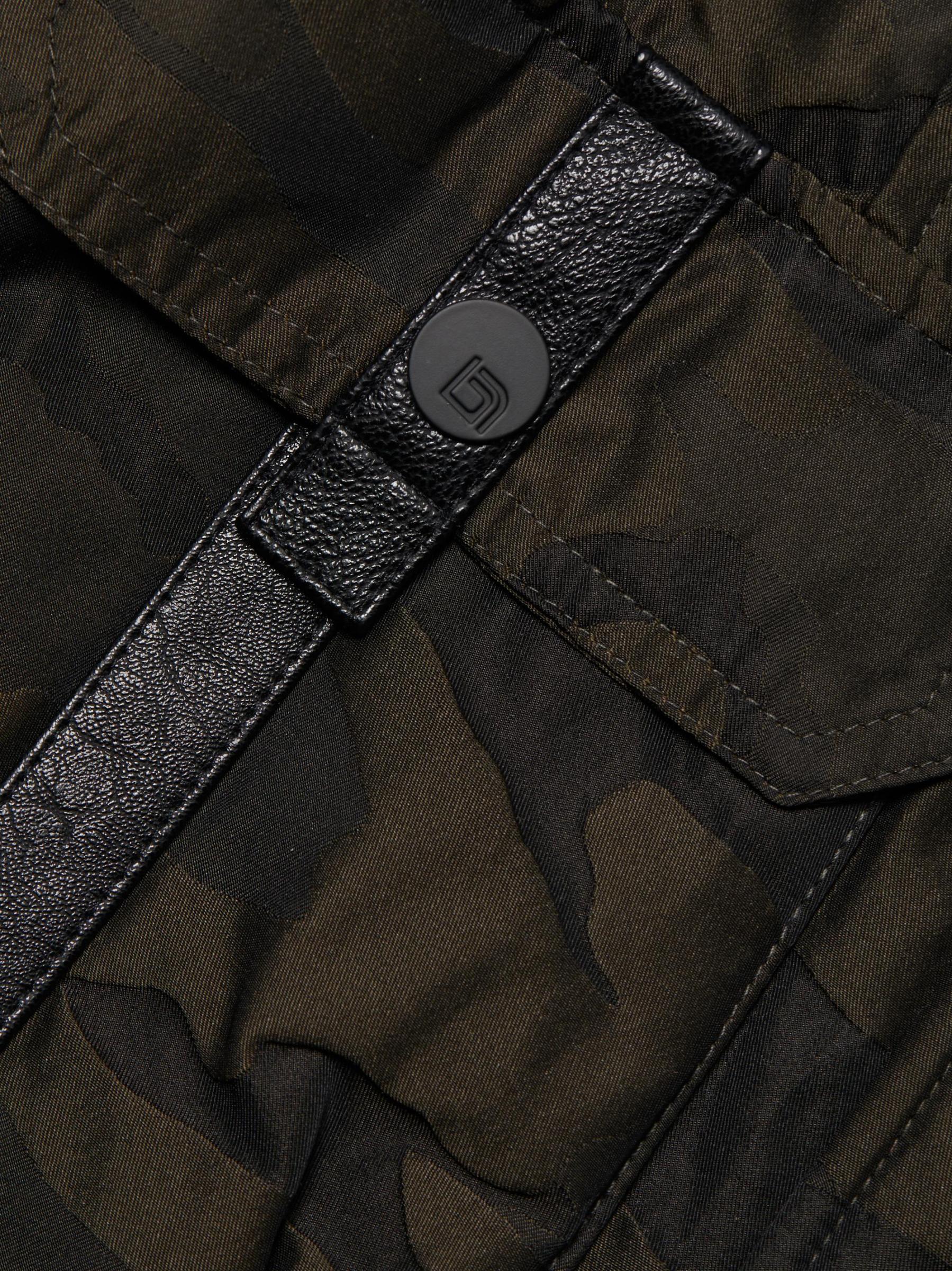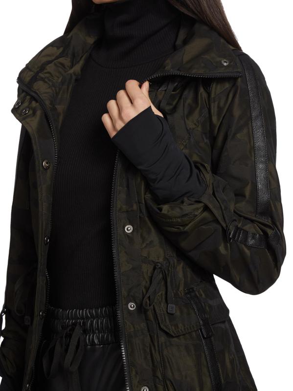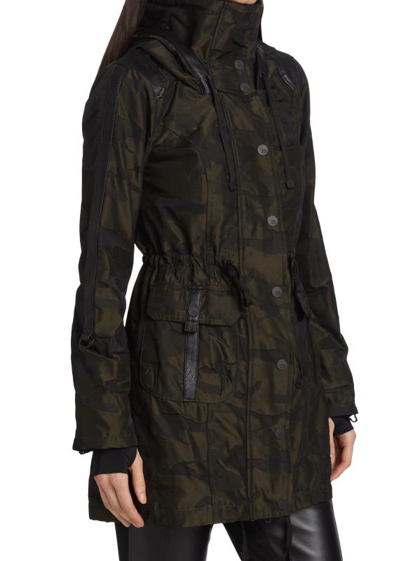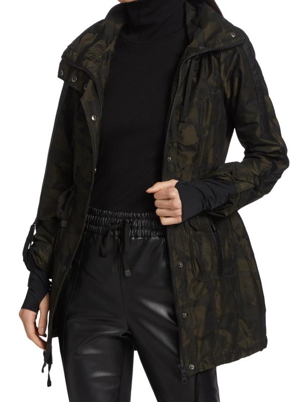 تضفي الصورة الظلية الضيقة وتفاصيل الشريط المزركش والجيوب الواسعة جدًا على هذا الجاكيت المموه المقاوم للماء نكهة عسكرية.