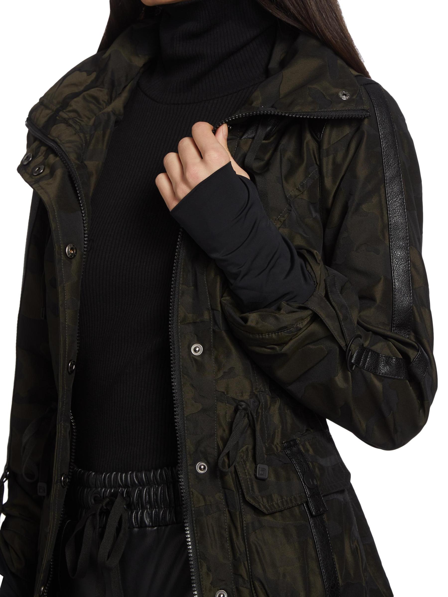 تضفي الصورة الظلية الضيقة وتفاصيل الشريط المزركش والجيوب الواسعة جدًا على هذا الجاكيت المموه المقاوم للماء نكهة عسكرية.ياقة ستاند أكمام طويلة أساور ستورم سحّاب أمامي مع غطاء سناب ستورم خصر برباط قابل للتعديل جيبان أماميان بطانة قابلة للتمدد بوليستر يُغسل في الغسالة مستوردة