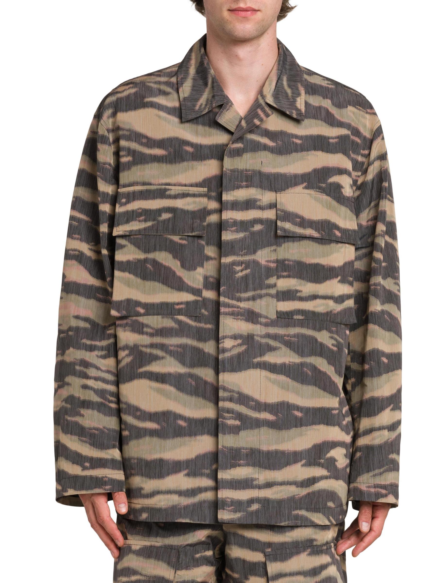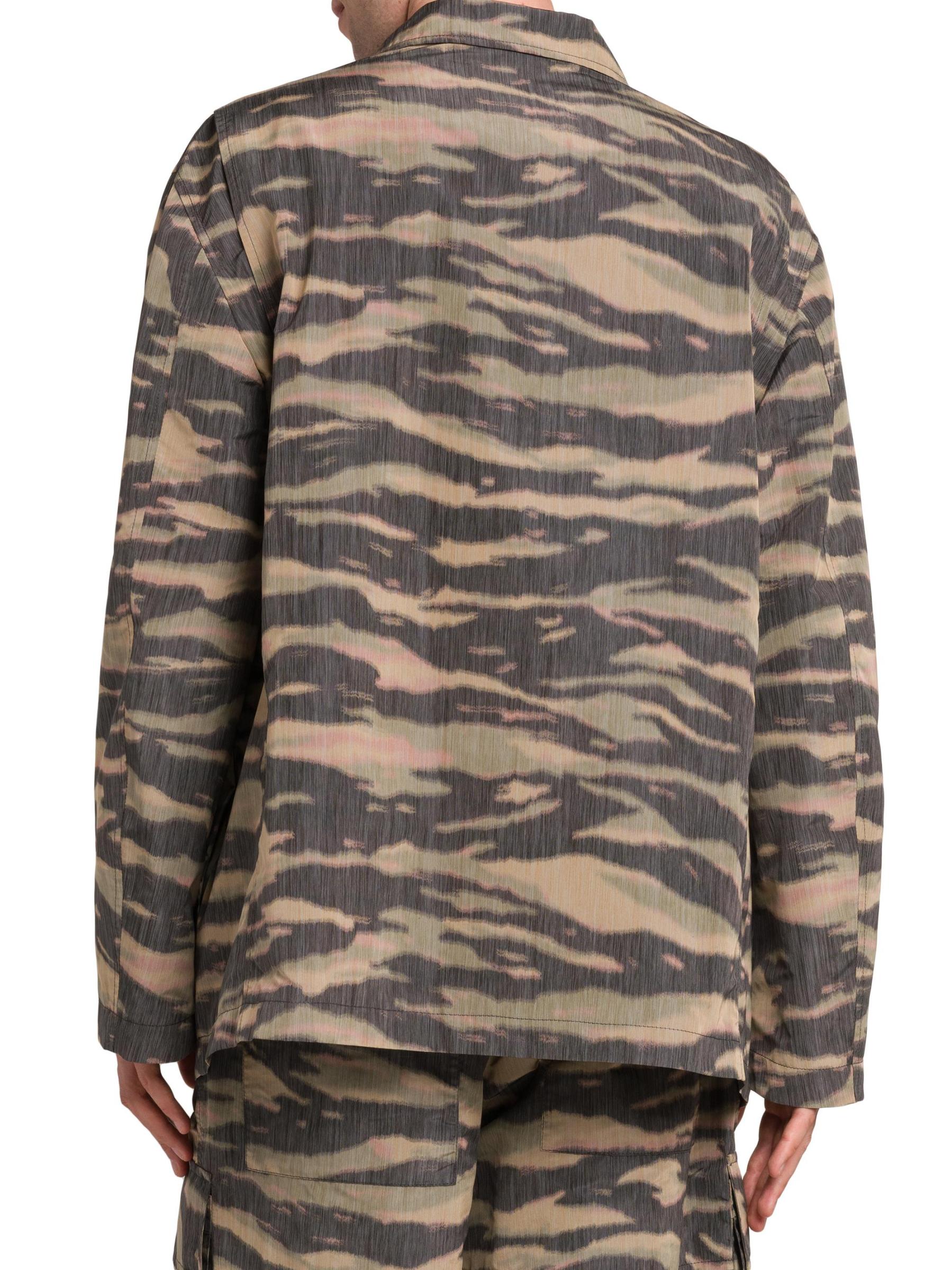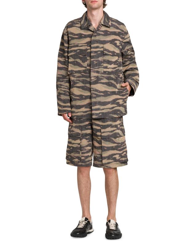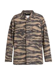 تم تصميم هذا الجاكيت الرياضي من جيل ساندر بطبعة مموهة وياقة واسعة وجيوب بغطاء على الصدر.