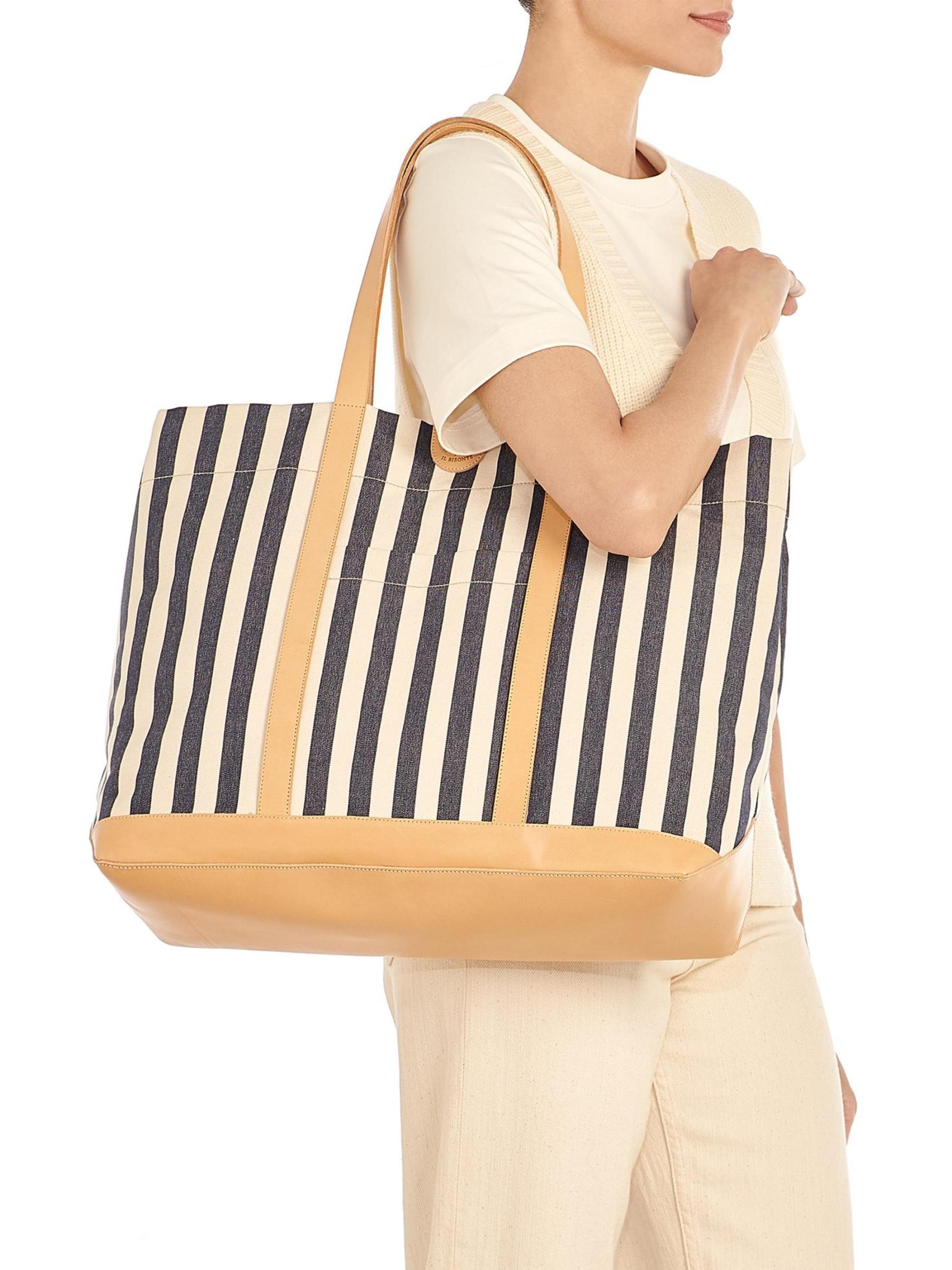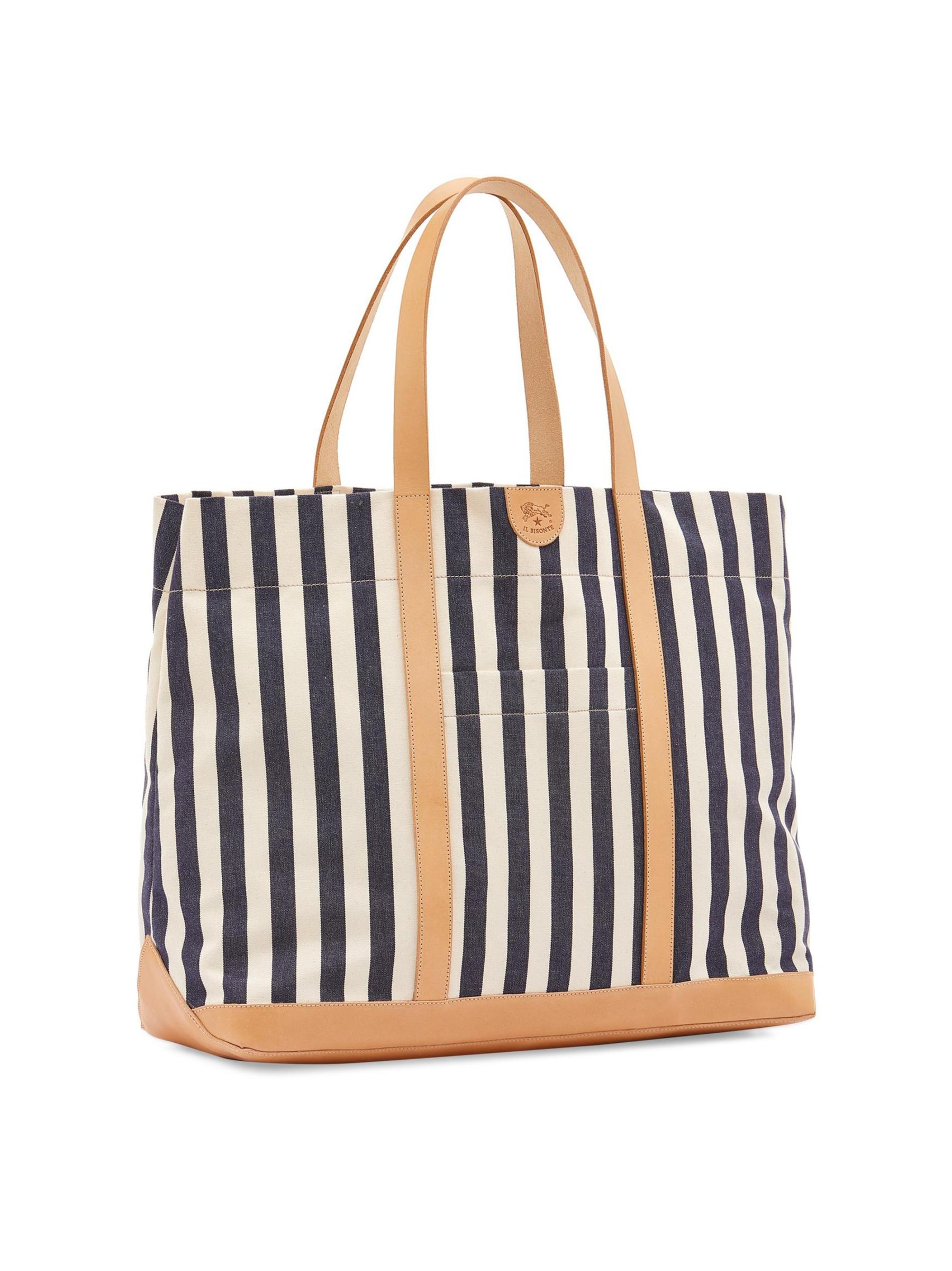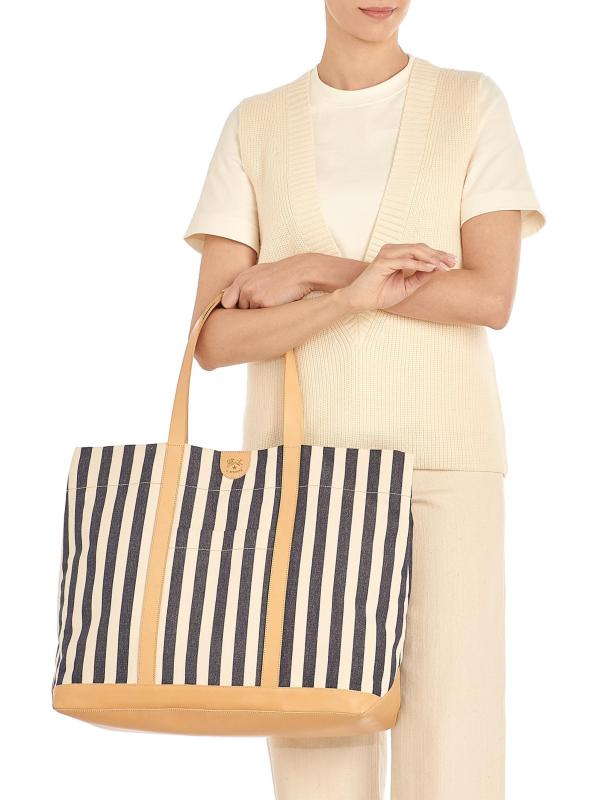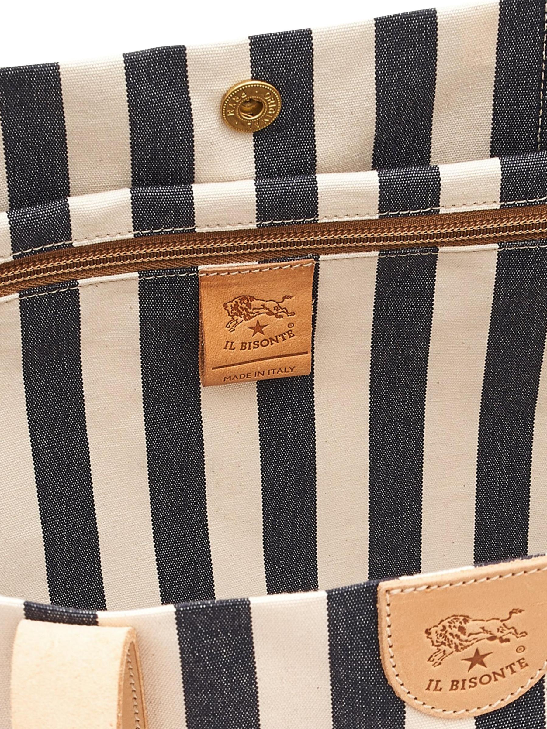 من مجموعة كاراميلا. تتميز حقيبة II Bisonte الكلاسيكية المصنوعة من القماش الكبير بزخرفة ومقابض من الجلد المدبوغ بالخضروات وجيب خارجي مفتوح وجيب بسحّاب يمكن استخدامه كحقيبة.