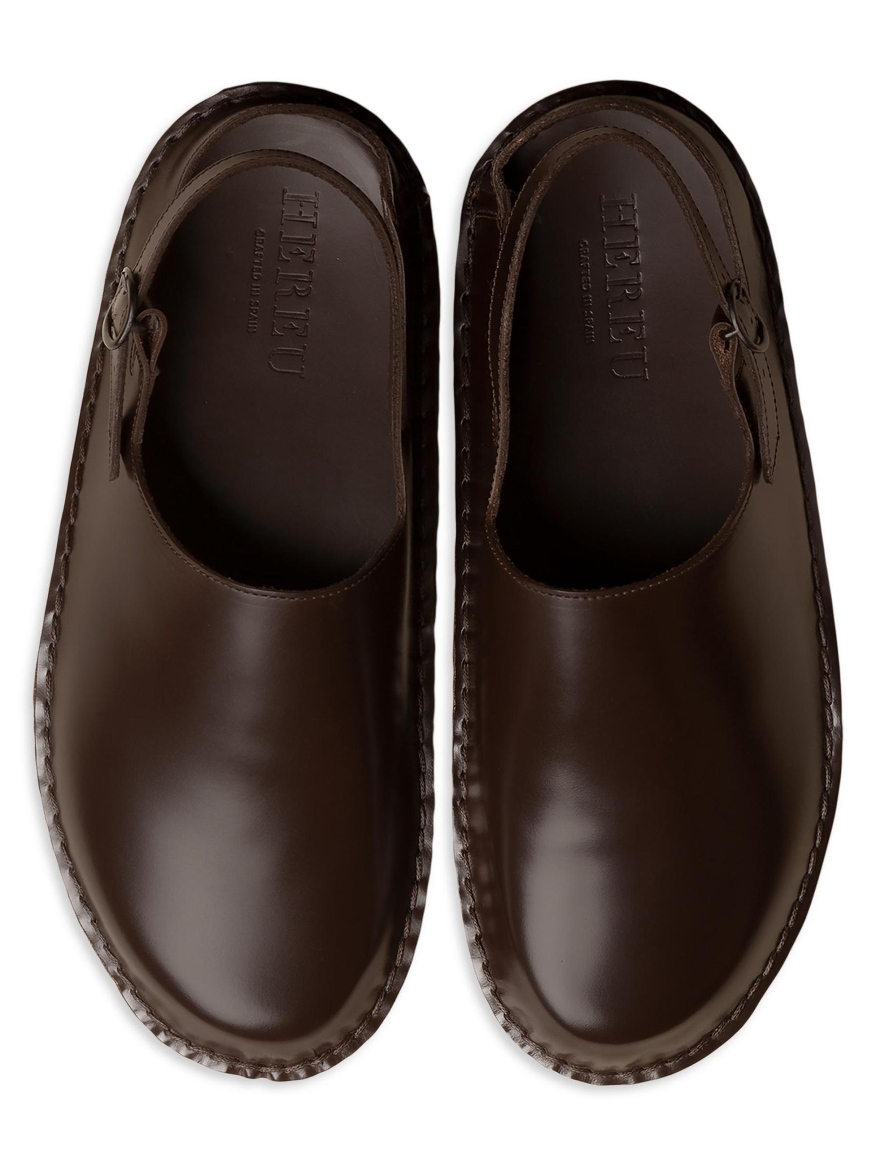 حذاء Cargol 2 من Hereu مصنوع من الجلد ويتميز بتفاصيل مطرزة. تم تصميم هذا الزوج على إسفين خفيف الوزن وصُنع في إسبانيا على يد حرفيين محليين، احتفالًا بالتميز في الحرفية.