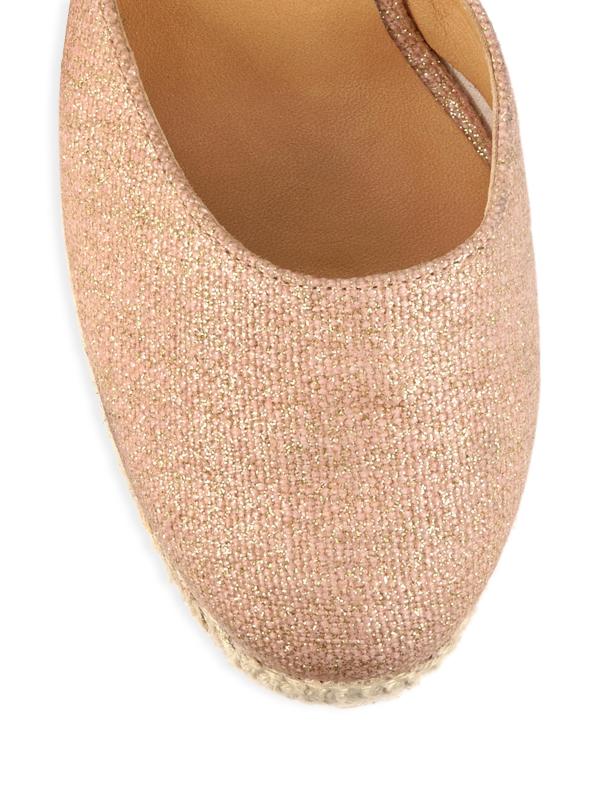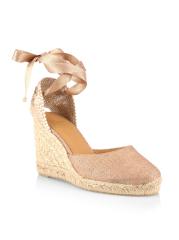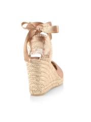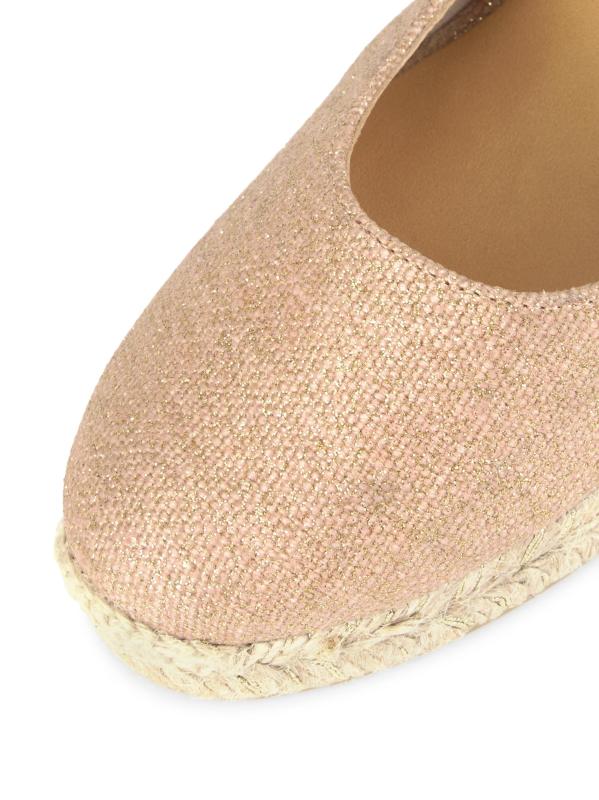 صندل Carina من Castañer مصنوع من القماش المعدني مع كعب إسفين من الجوت.