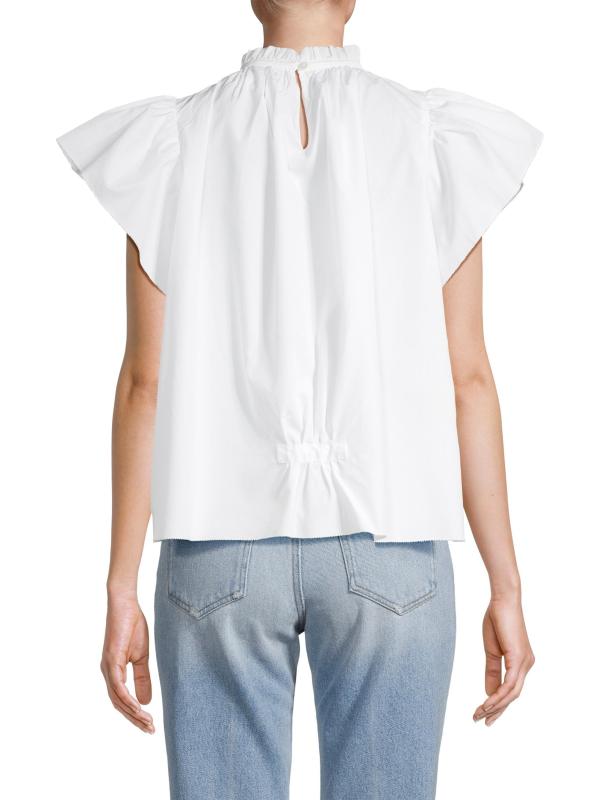 يتميز قميص كارلا من Birds of Paradis برقبة عالية مكشكشة مما يزيد من سحره الرومانسي. يتميز هذا الطراز، المُحاط بأكمام قصيرة، بفتحة خلفية.رقبة عالية أكمام قصيرة تسحب قطن بنسبة 100% يُغسل في الغسالة مستوردة