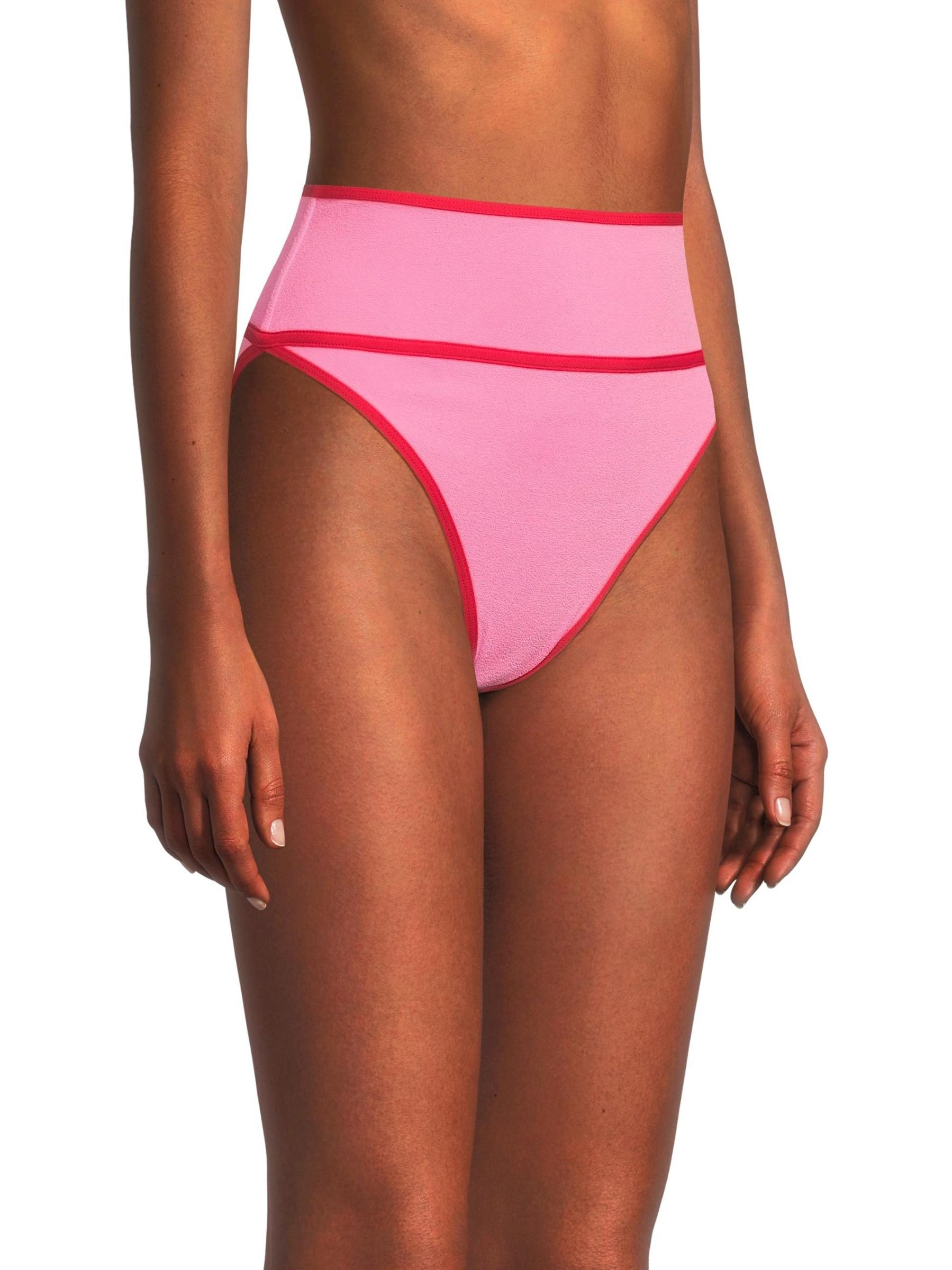 يتميز الجزء السفلي من بيكيني Carlotta من Beach Riot بتفاصيل أنابيب متباينة وحزام خصر مطاطي.
