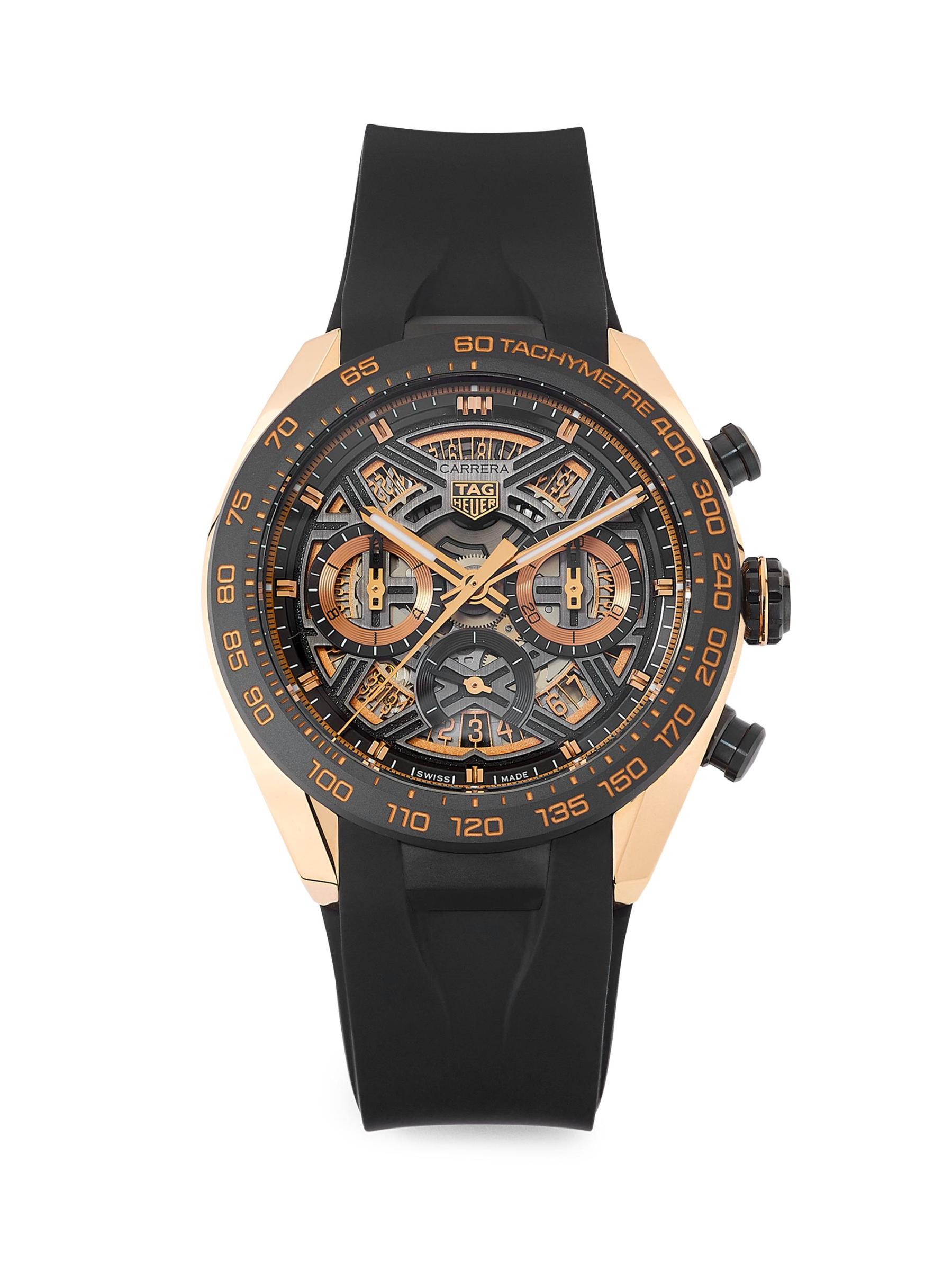 ساعة كاريرا TH-20 Extreme من الذهب الوردي عيار 18 قيراط والتيتانيوم والمطاط/44 ملم