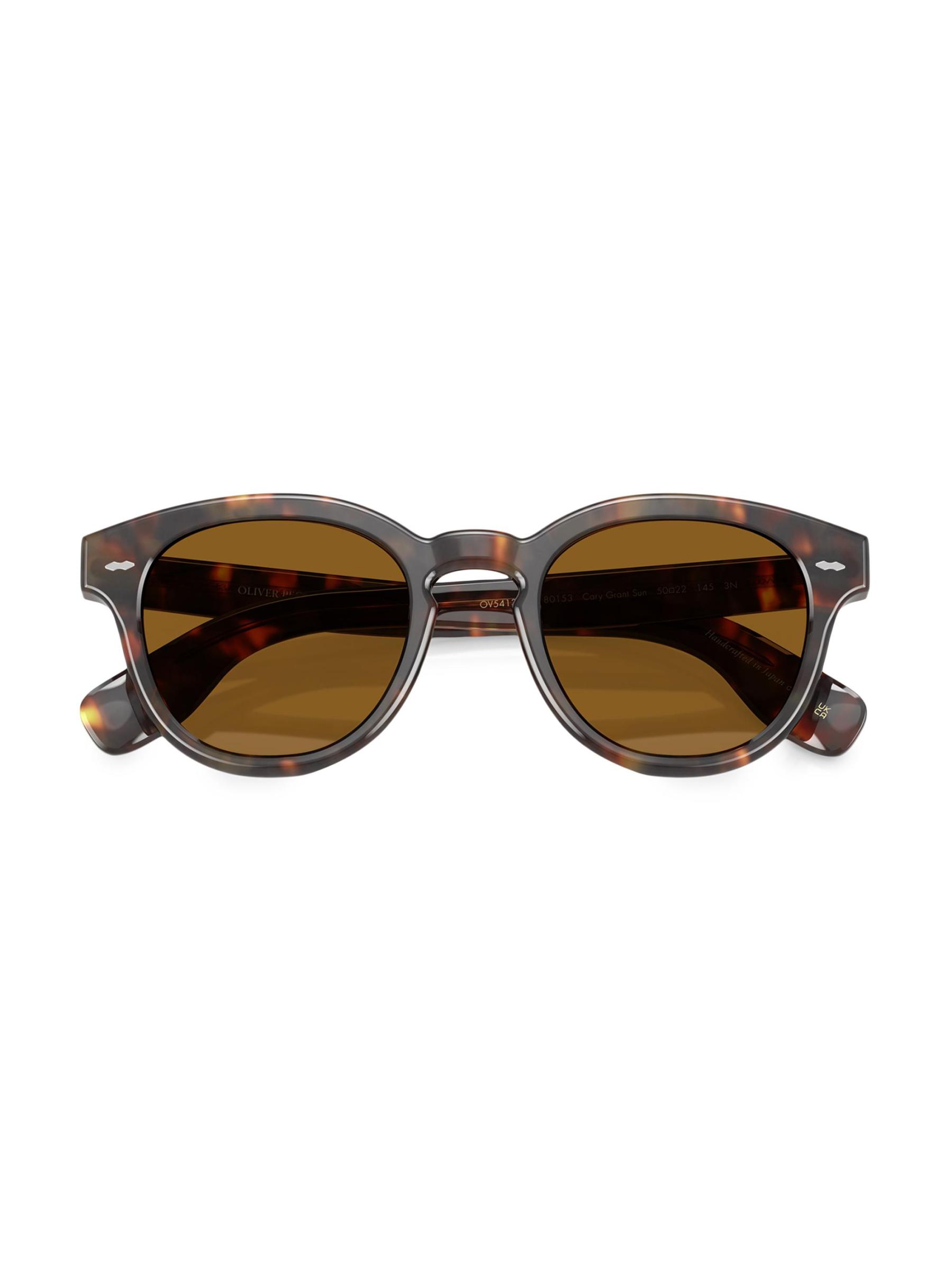 تتميز هذه النظارات الشمسية Cary Grant المصنوعة في إيطاليا من Oliver Peoples بإطارات مستديرة على شكل صدف السلحفاة وعدسات صلبة.