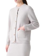 يُضفي كارديجان أكريس المحبوك المصنوع من البيكيه الناعم من الكشمير لمسة جمالية على شكل صندوقي مع تقليم مضلع أنيق وجيوب مرقعة ساحرة. تتميز هذه القطعة ذات الأزرار الأمامية بياقة مستديرة مناسبة لكل الأوقات وأكمام طويلة.