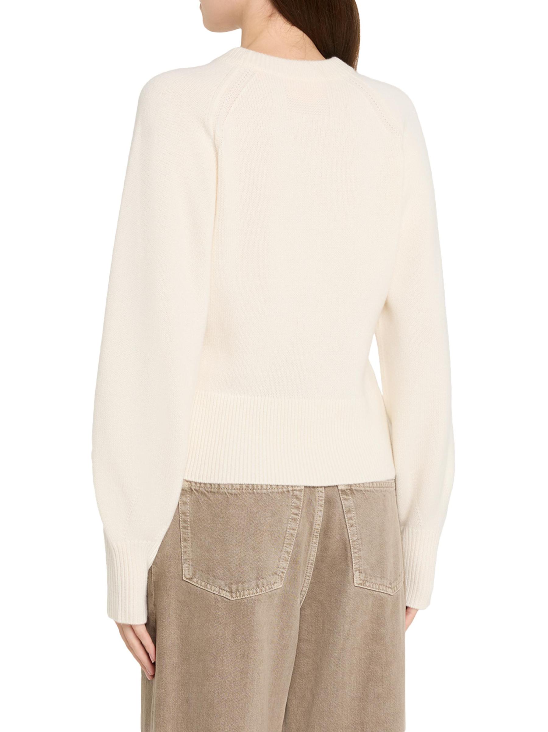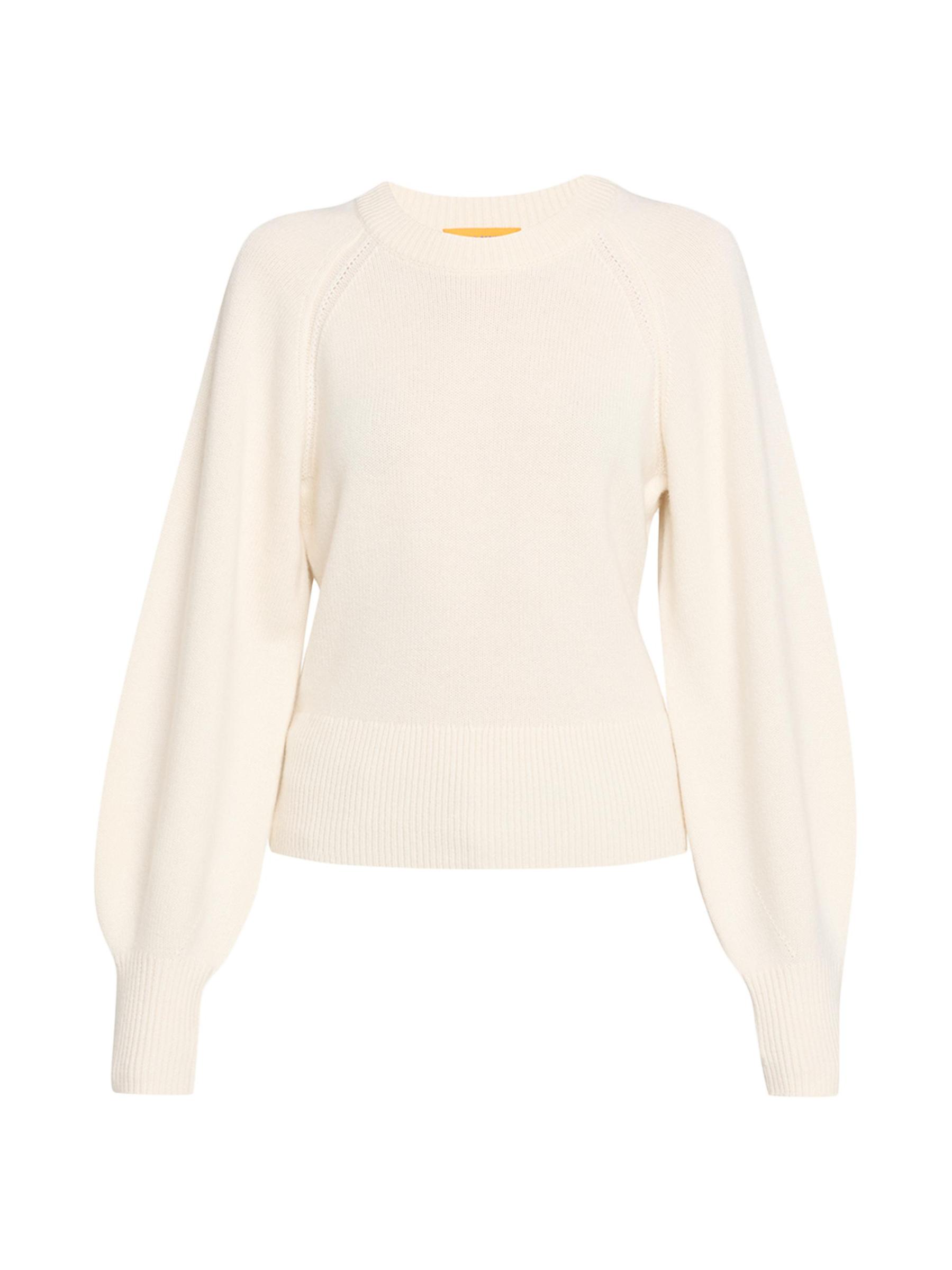 هذه السترة من Guest in Residence منسوجة من أنعم أنواع الكشمير ذات الوزن الثقيل، وهي مؤطرة بأكمام كاملة ومنفوخة.