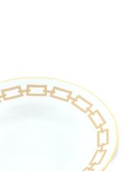 من مجموعة Catenedi. يتميز الخزف Catene Cachemire المصنوع من Ginori 1735 وألواح الحساء المصنوعة من الذهب الأصفر عيار 18 قيراطًا بنمط هندسي يشبه سلسلة متشابكة من السلاسل الأنيقة التي ابتكرها العبقري الإبداعي لجيو بونتي.