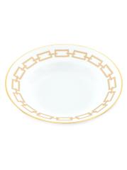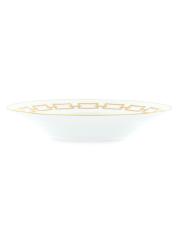 من مجموعة Catenedi. يتميز الخزف Catene Cachemire المصنوع من Ginori 1735 وألواح الحساء المصنوعة من الذهب الأصفر عيار 18 قيراطًا بنمط هندسي يشبه سلسلة متشابكة من السلاسل الأنيقة التي ابتكرها العبقري الإبداعي لجيو بونتي.بورسلين الزخرفة: ذهب أصفر عيار 18 قيراطًا آمنة للاستخدام في غسالة الأطباق صُنع في إيطاليا