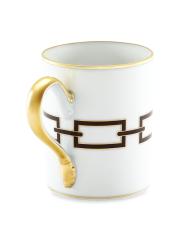 من مجموعة Catenedi. يتميز خزف Catene Ebano المصنوع من Ginori 1735 والموسج المصنوع من الذهب الأصفر عيار 18 قيراطًا بنمط هندسي يشبه سلسلة متشابكة من السلاسل الأنيقة التي ابتكرها العبقري الإبداعي لجيو بونتي.بورسلين الزخرفة: ذهب أصفر عيار 18 قيراطًا آمنة للاستخدام في غسالة الأطباق صُنع في إيطاليا