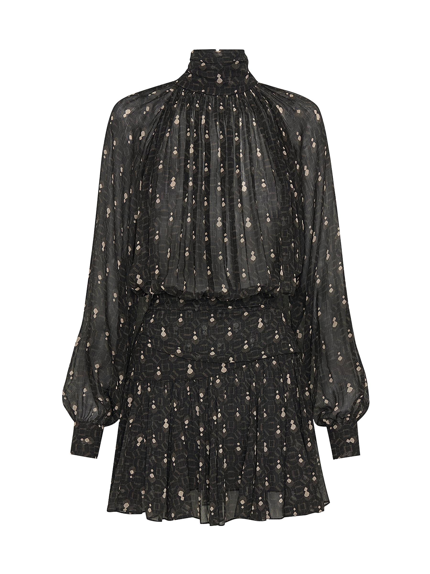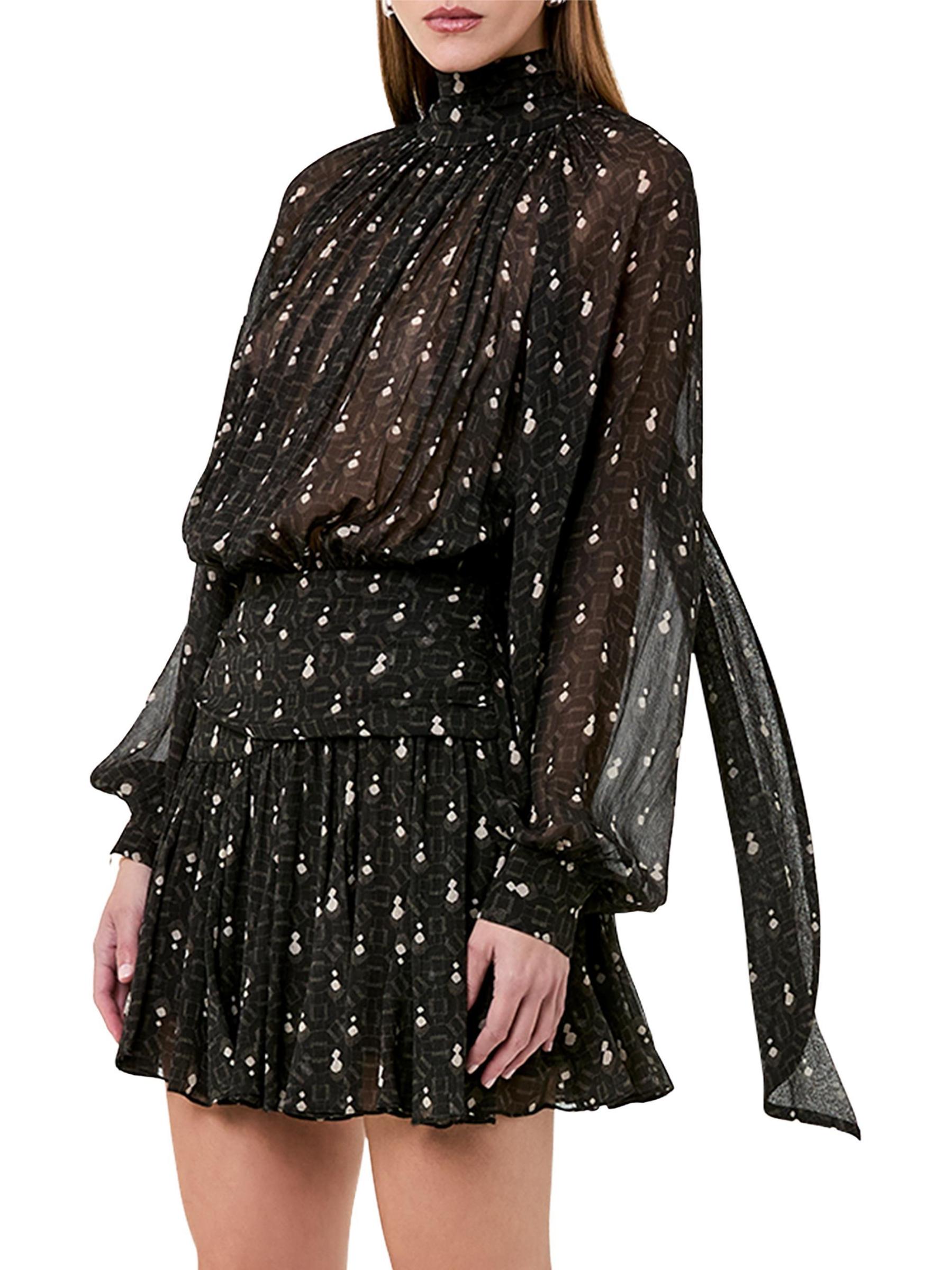 يجمع فستان Cecile القصير من Nicholas the Label بين صدّار متموج وأكمام بلوسون وخصر منسدل مُحكم وأساور منسدلة للحصول على صورة ظلية مفعمة بالحيوية. تم تصميم هذه القطعة الساحرة في ملابس واقية وتتميز بياقة مكشكشة وربطة عنق خلفية.