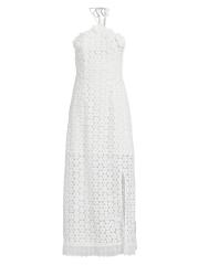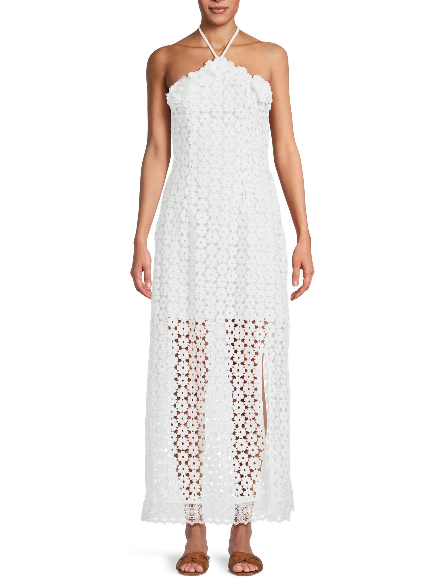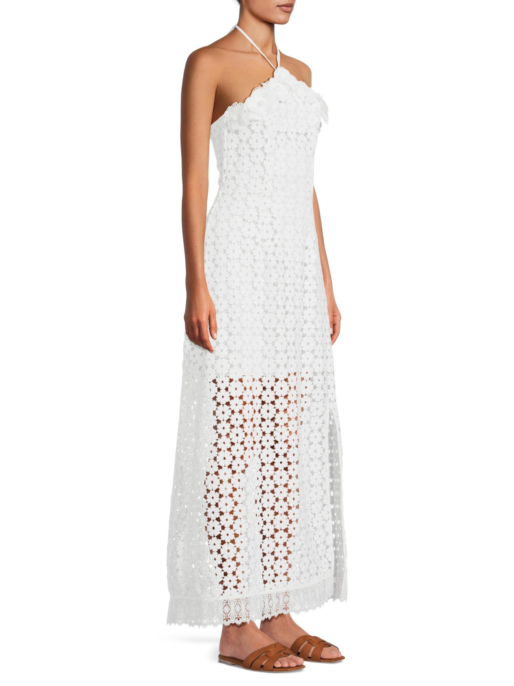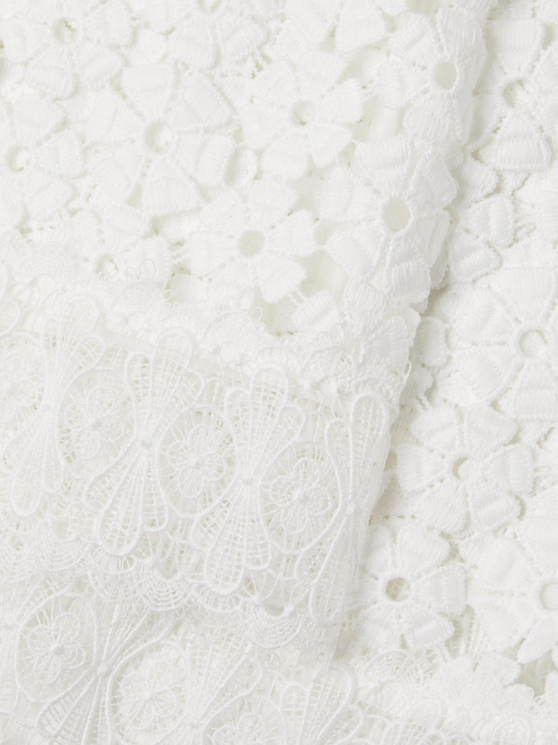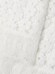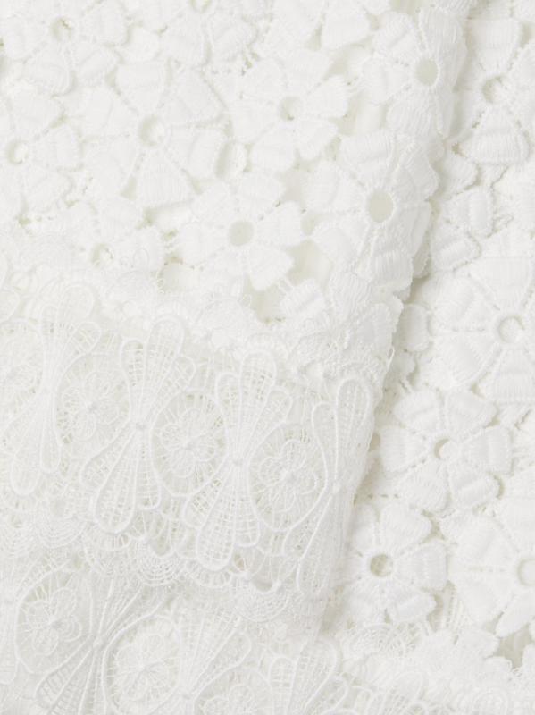 من مجموعة فلور ديل فينتو. يُبرز فستان «سيليست» الماسي ذو الرقبة الرسن من «وايماري»، المصنوع من الجبر على شكل أزهار، صورة ظلية مقصوصة على شكل أميرة. تم تزيين خط العنق بأزهار مطرزة يدويًا تكملها زخارف مستديرة مصنوعة يدويًا من الخرز.